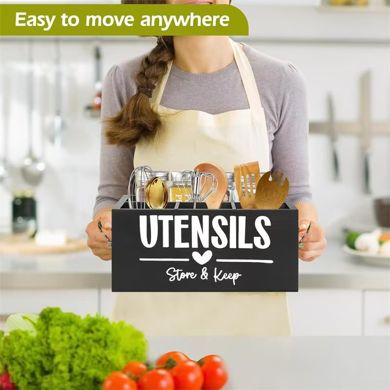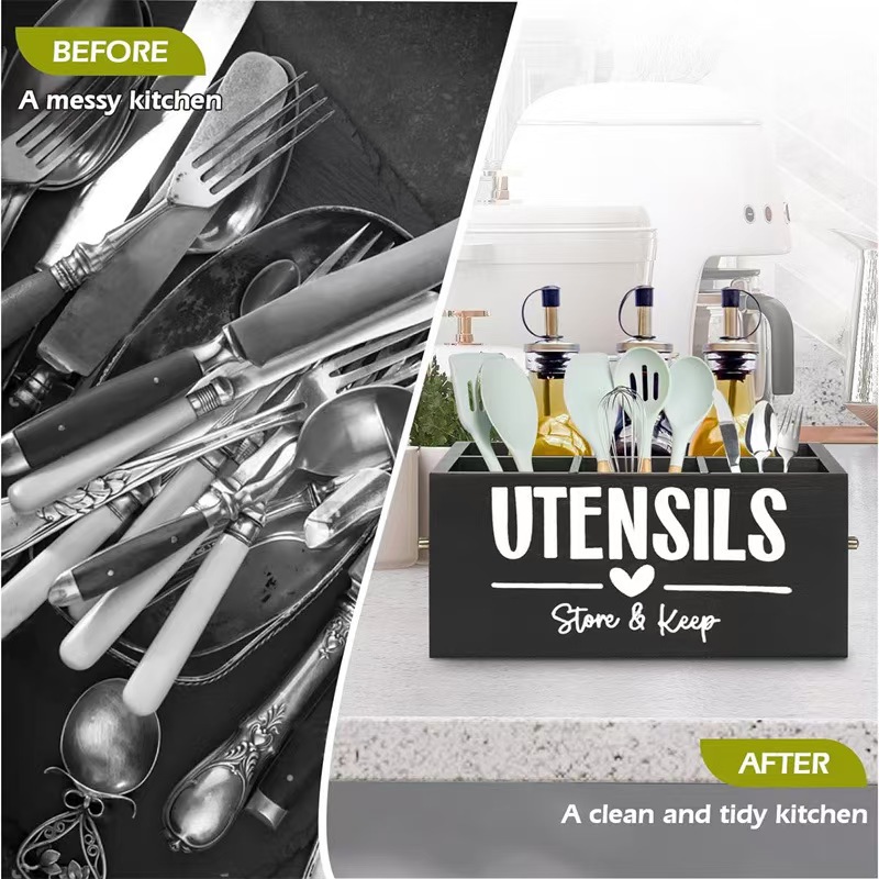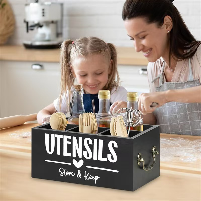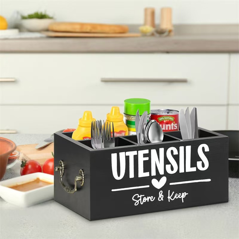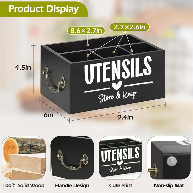 국경 나무 구획 주방 식기 보관 상자 데스크탑 나이프와 포크 저장 상자 단단한 나무 휴대용 요리 도구 상자스토어 가기