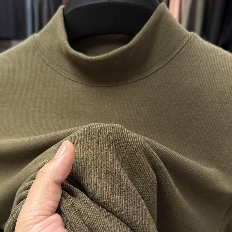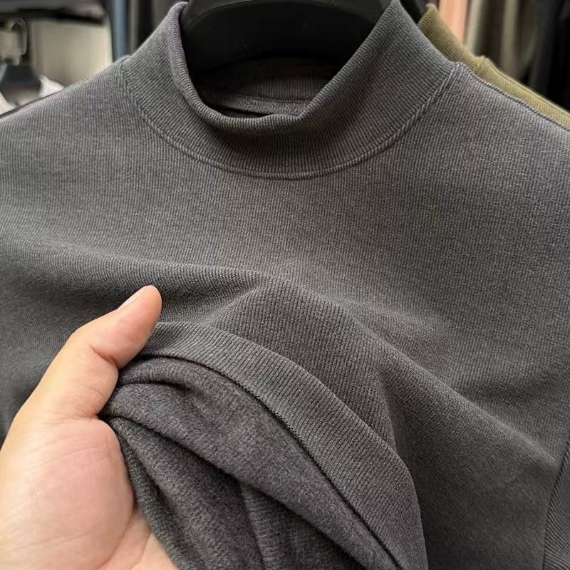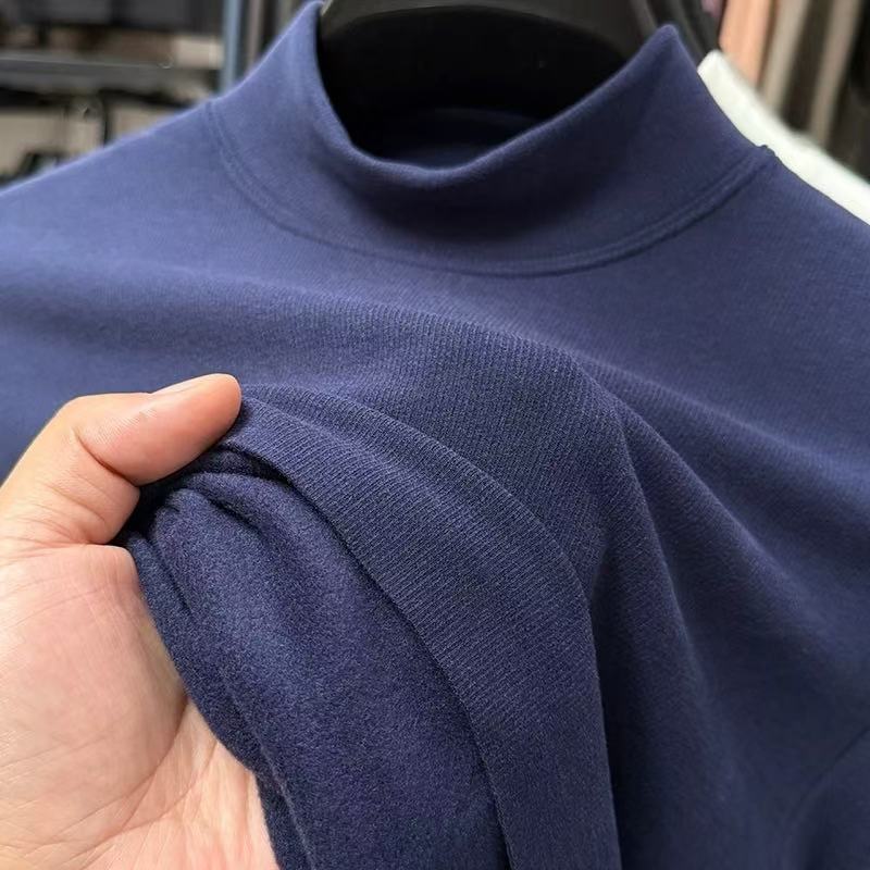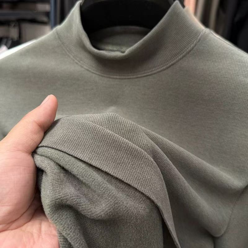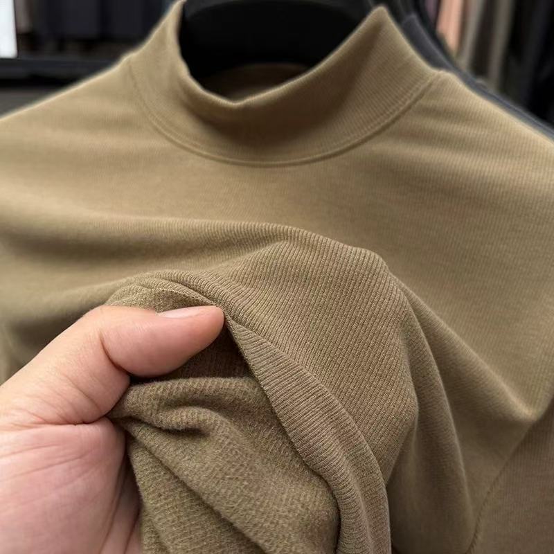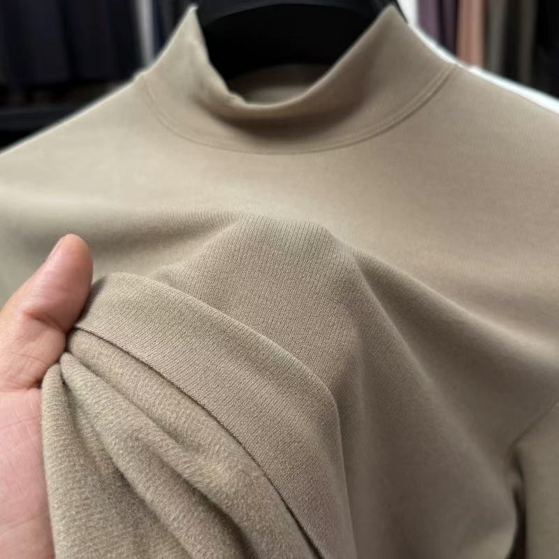 남자 양털베이스 셔츠 가을과 겨울 반 높이 칼라 벌거 벗은 솔리드 컬러 내부 따뜻한 양면 양털 긴팔 티셔츠