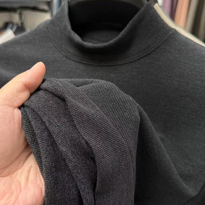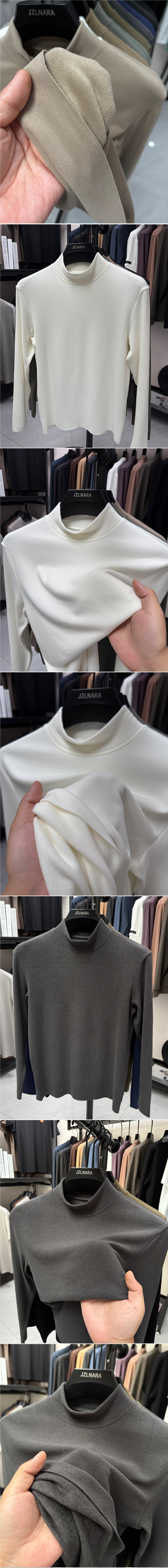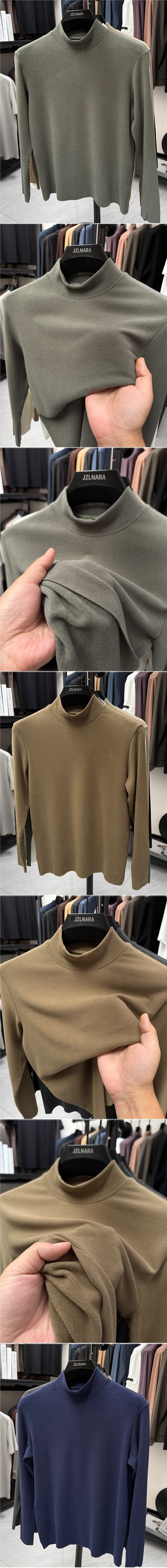남자 양털베이스 셔츠 가을과 겨울 반 높이 칼라 벌거 벗은 솔리드 컬러 내부 따뜻한 양면 양털 긴팔 티셔츠스토어 가기