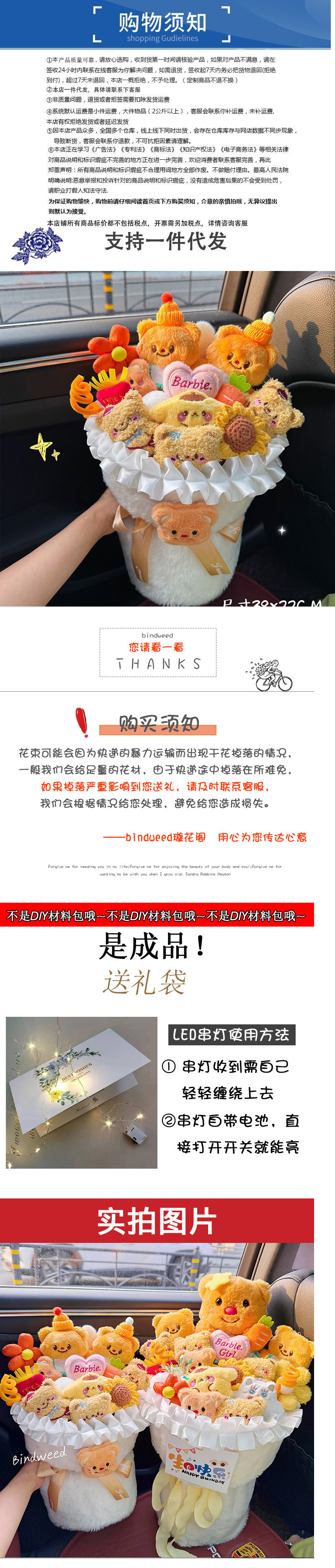 소녀들을위한 크리스마스 크림 버터 곰 꽃다발 인형 만화 꽃다발 인형 생일 선물스토어 가기