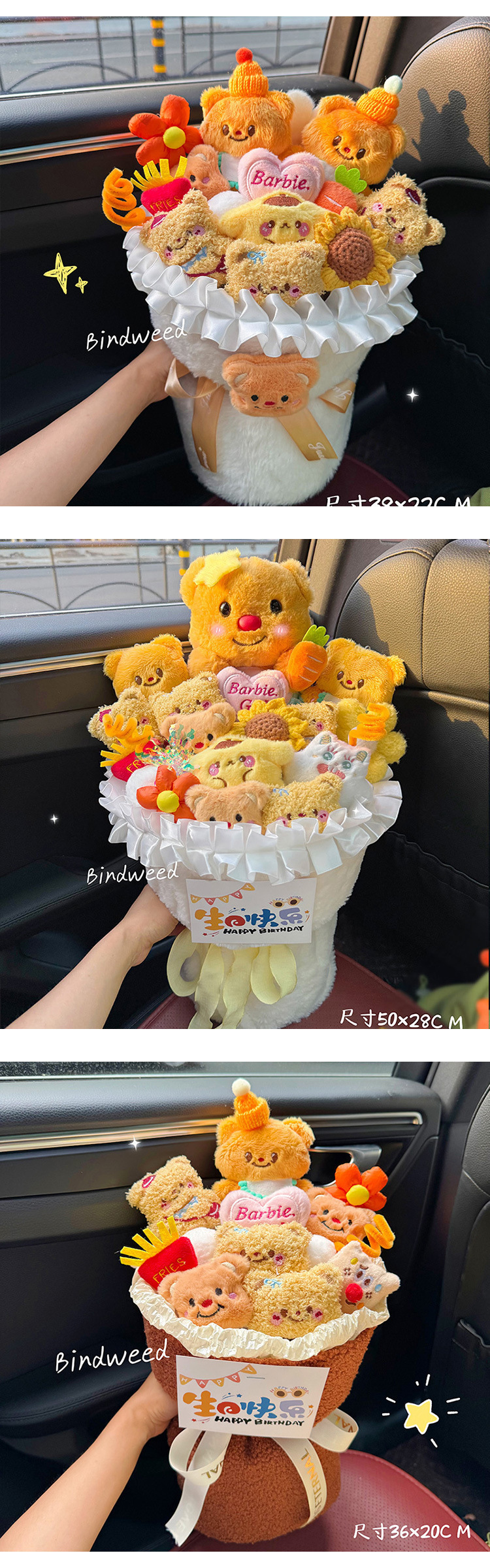 소녀들을위한 크리스마스 크림 버터 곰 꽃다발 인형 만화 꽃다발 인형 생일 선물