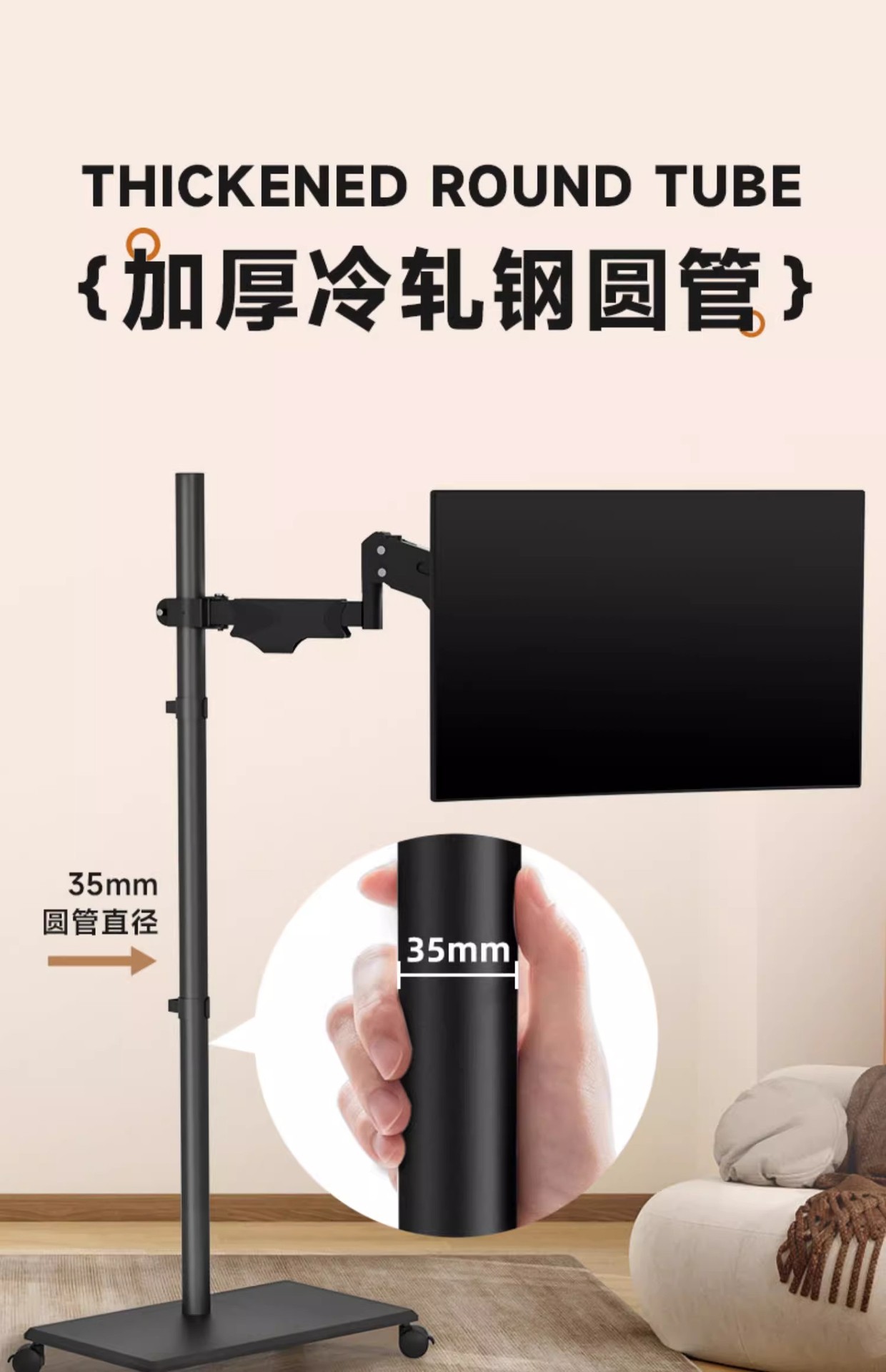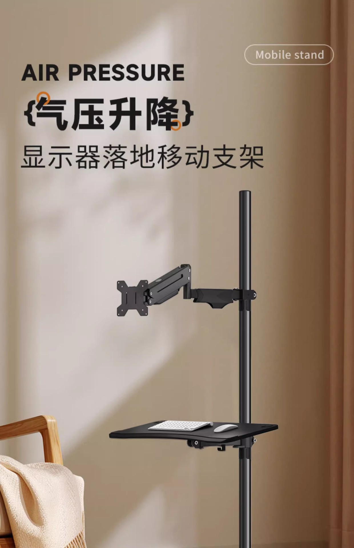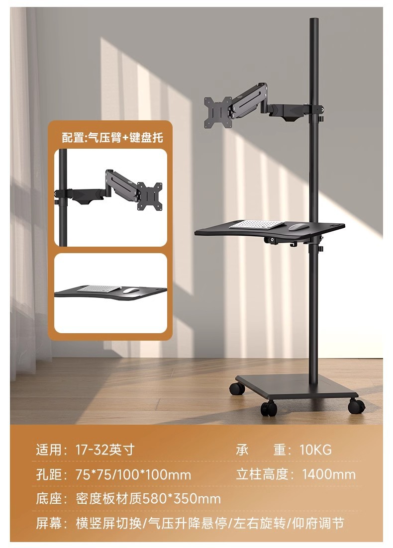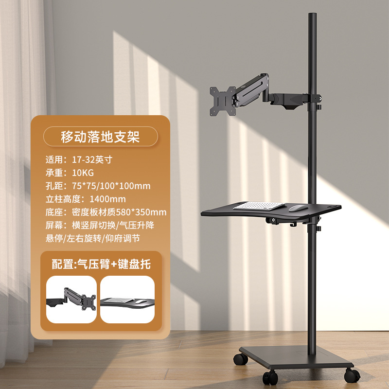 • 단일 화면 공기압 암 + 키보드 트레이 플로어 스탠딩 이동식 17-32inch