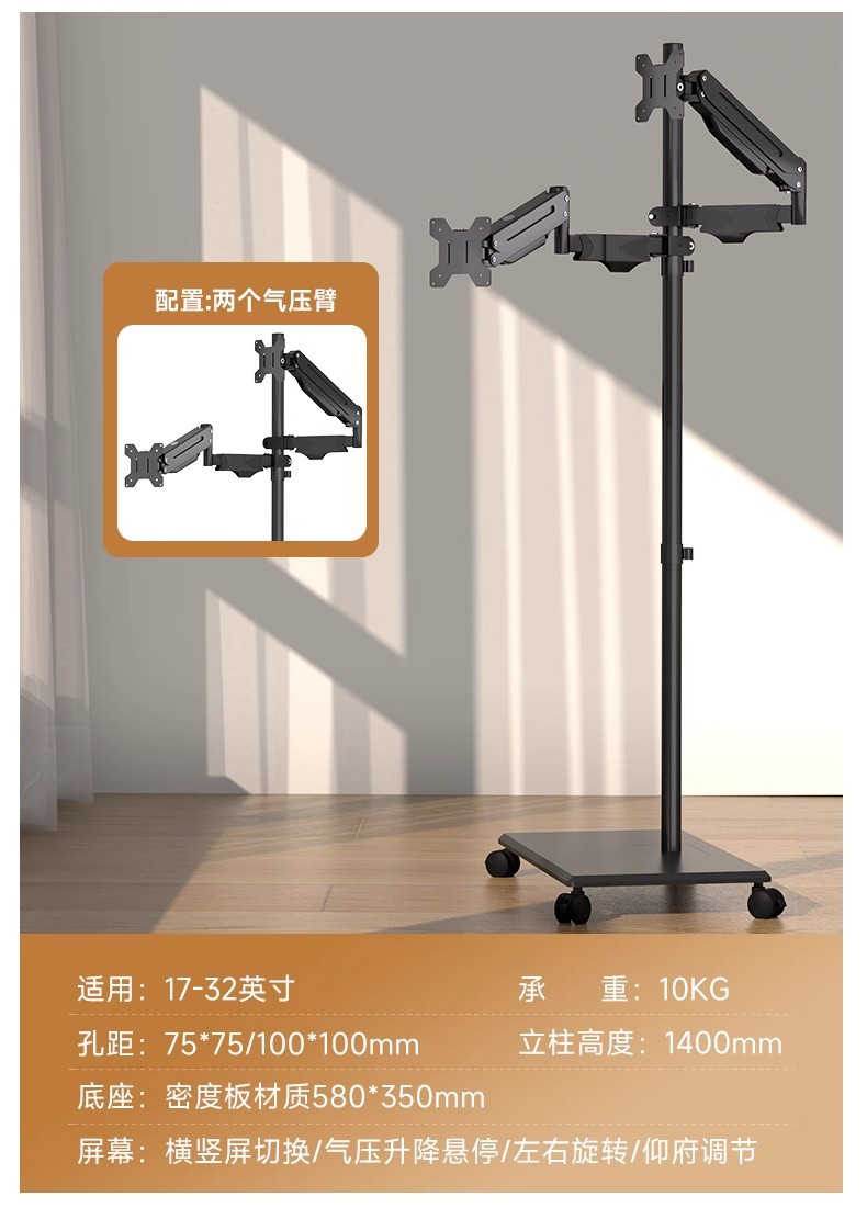 • 듀얼 스크린 공기압 암 플로어 스탠딩 탈착식 17-32inch