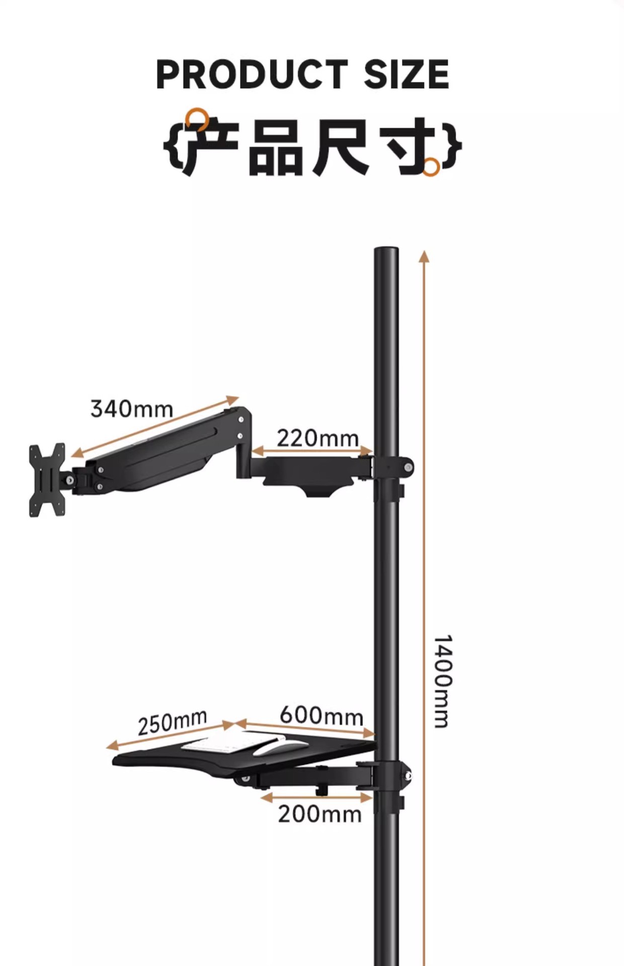 • 모니터 스탠드 + 노트북 트레이 조합 모니터: 17-32inch 노트북: 10-18inch