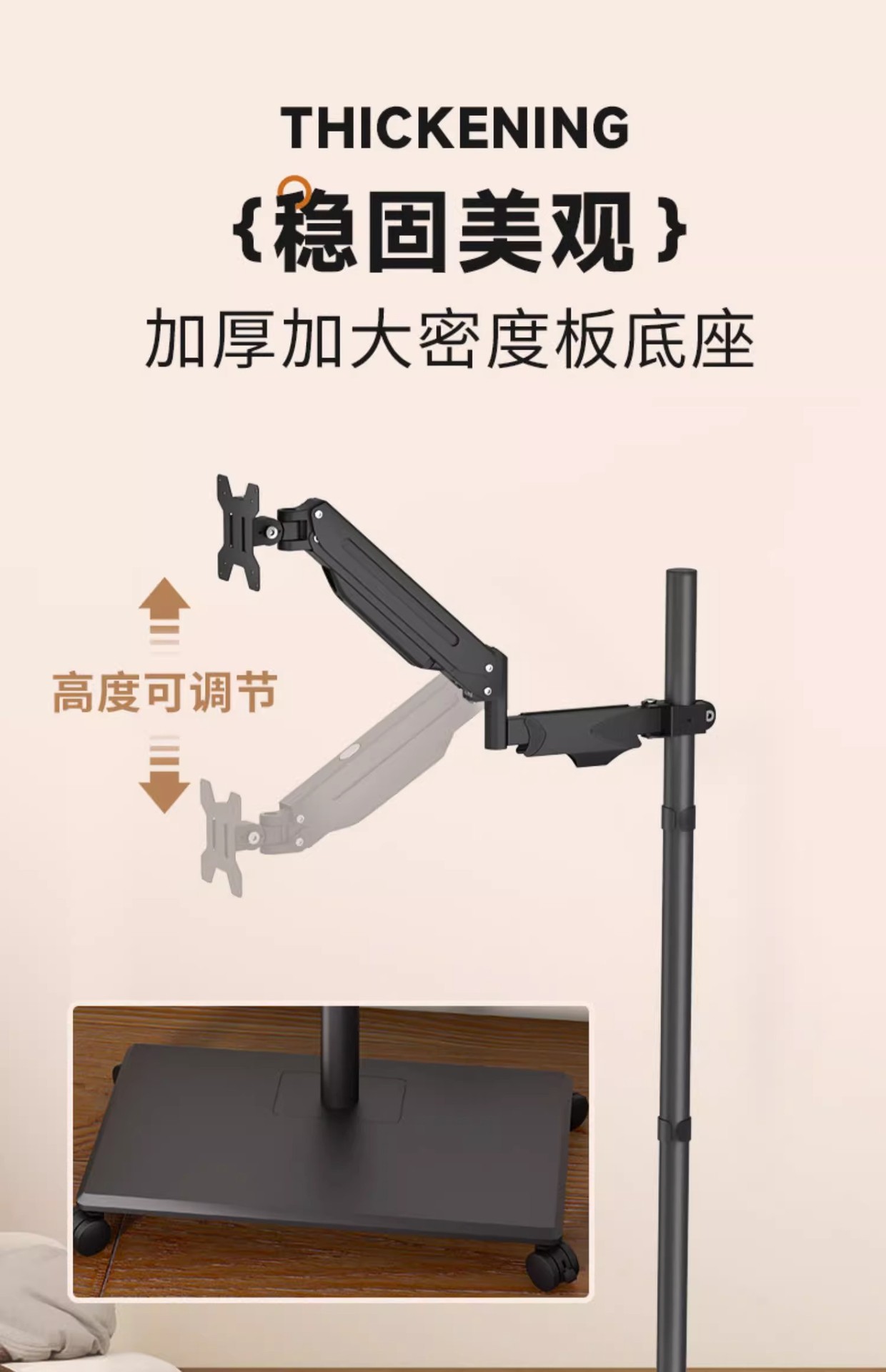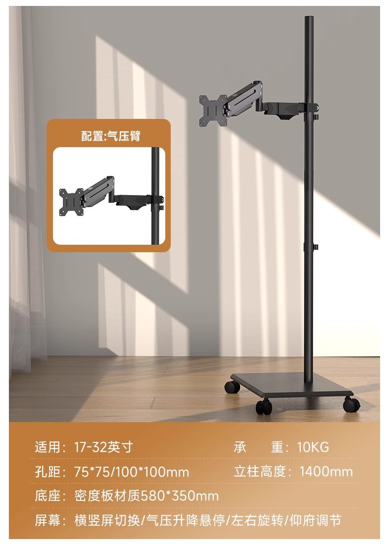 • 단일 스크린 공기압 암 플로어 스탠딩 이동식 17-32inch