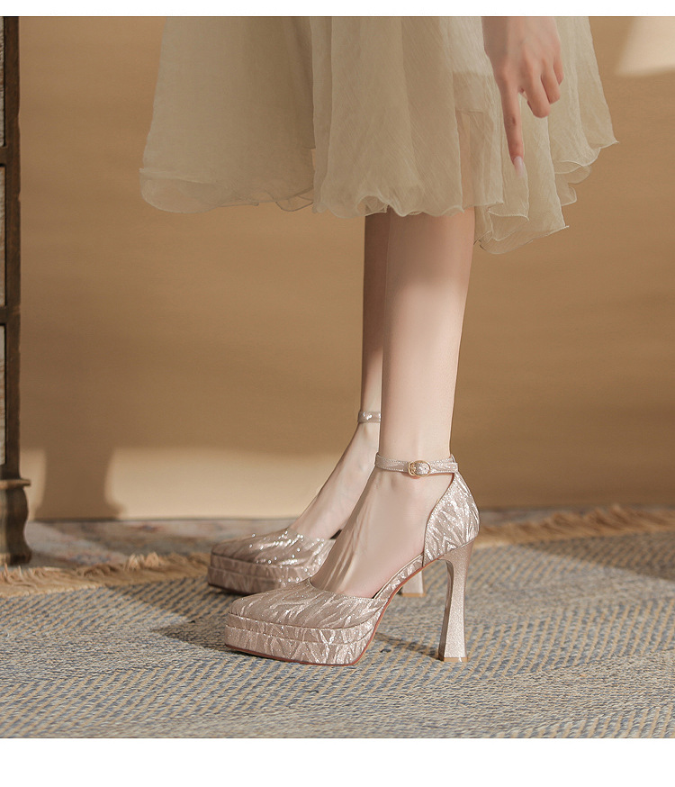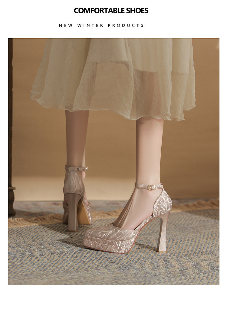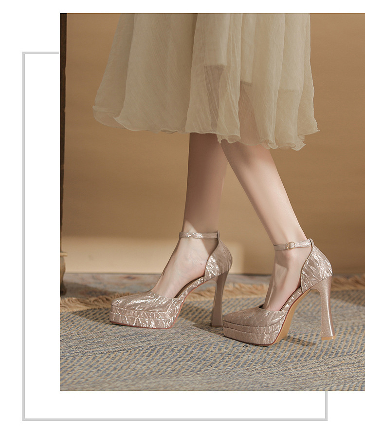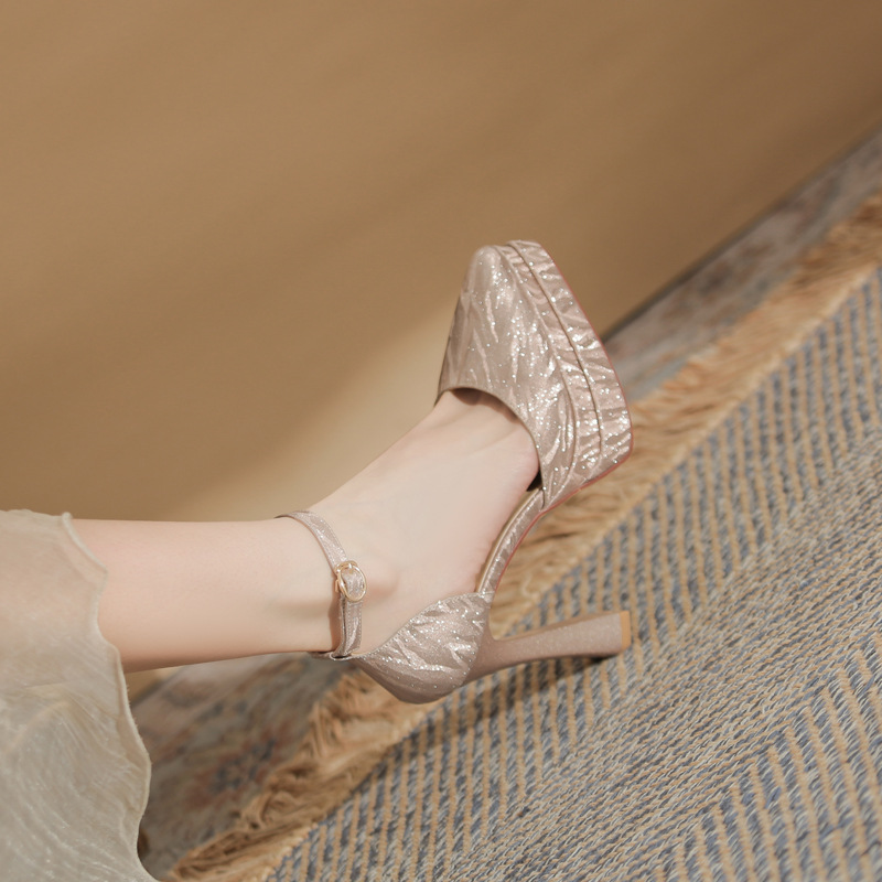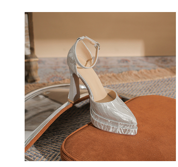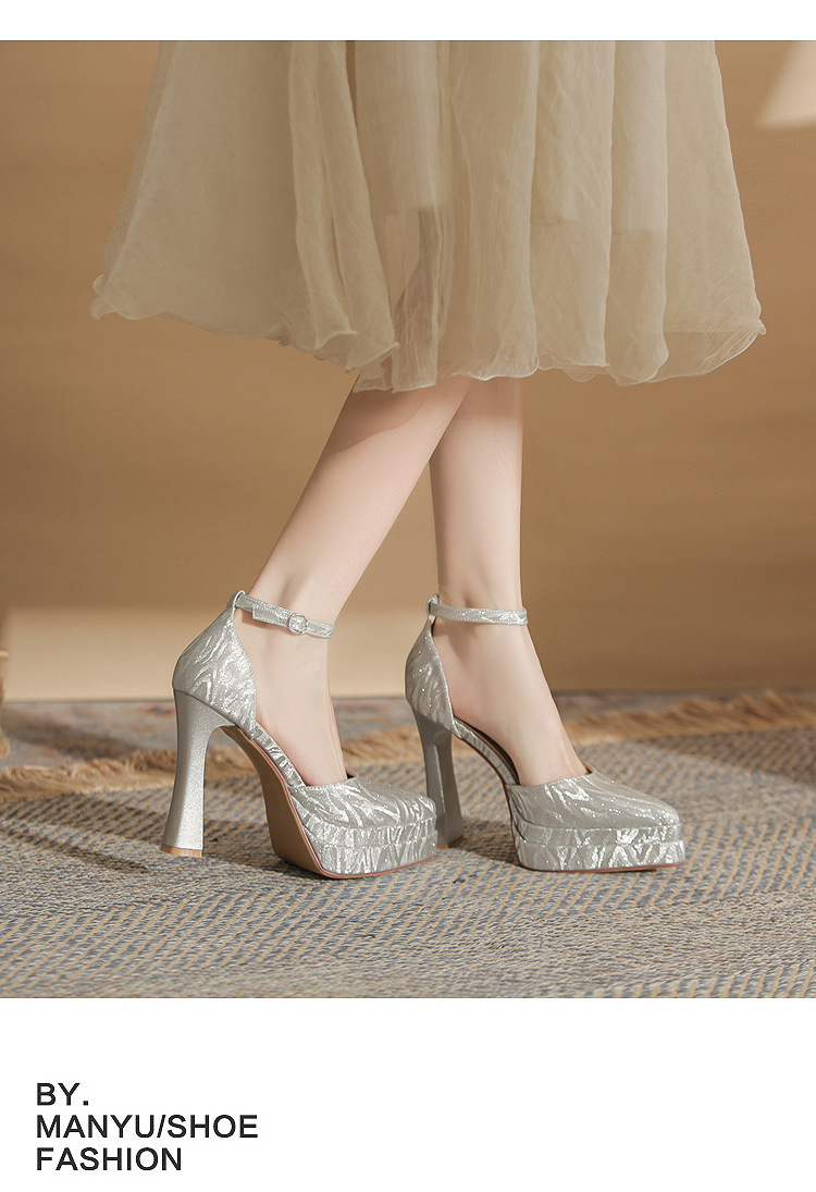 진강 M11507 뾰족한 두꺼운 힐 할로우 더블 레이어 방수 플랫폼 슈퍼 하이힐 싱글 신발 여성의 2025 웨딩 신발 신부 신발스토어 가기