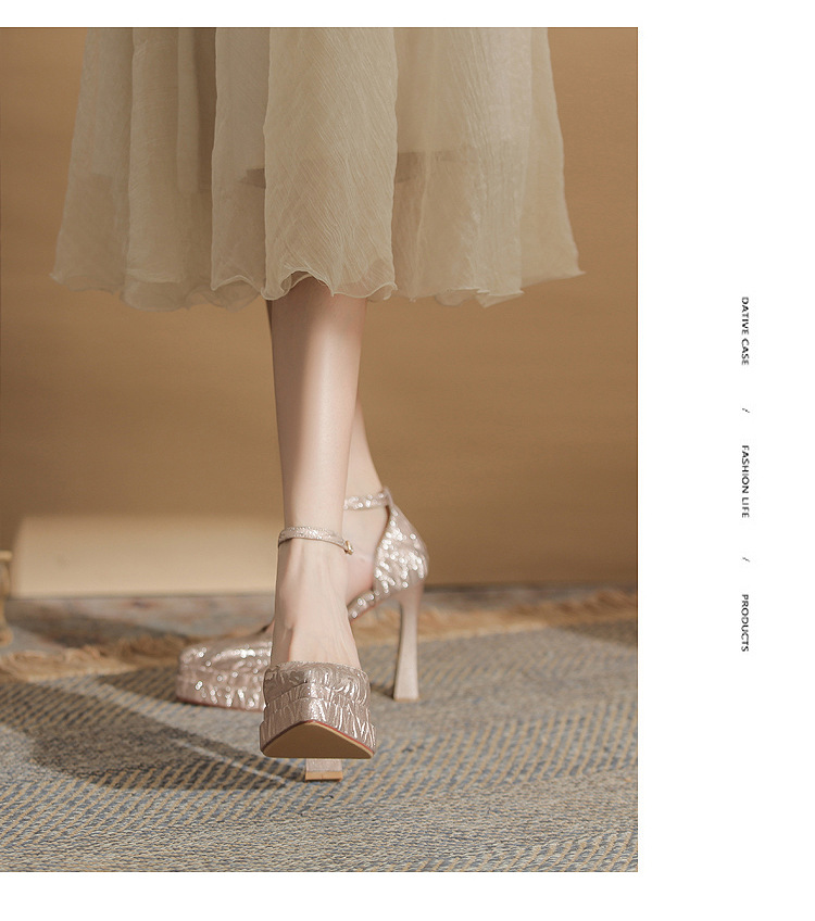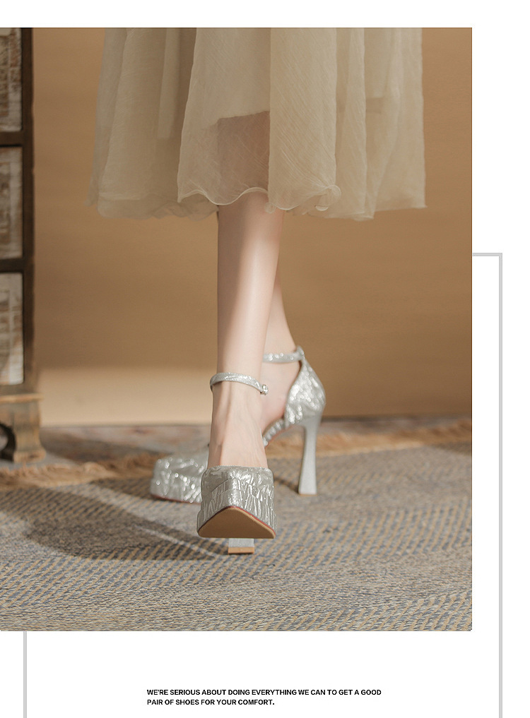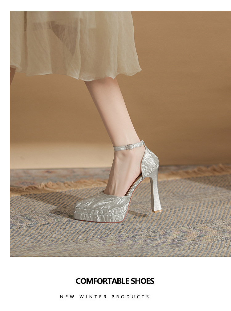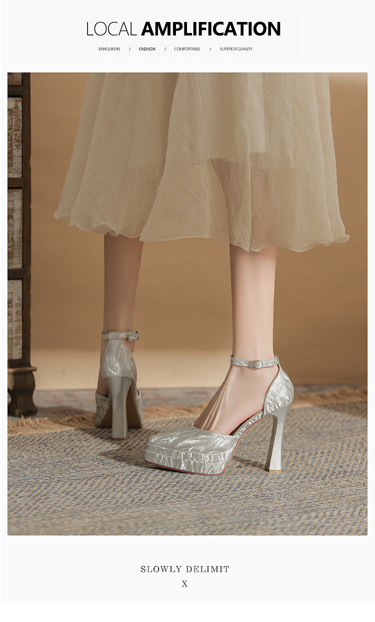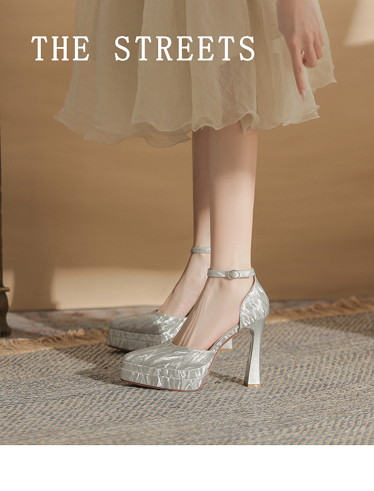진강 M11507 뾰족한 두꺼운 힐 할로우 더블 레이어 방수 플랫폼 슈퍼 하이힐 싱글 신발 여성의 2025 웨딩 신발 신부 신발스토어 가기
