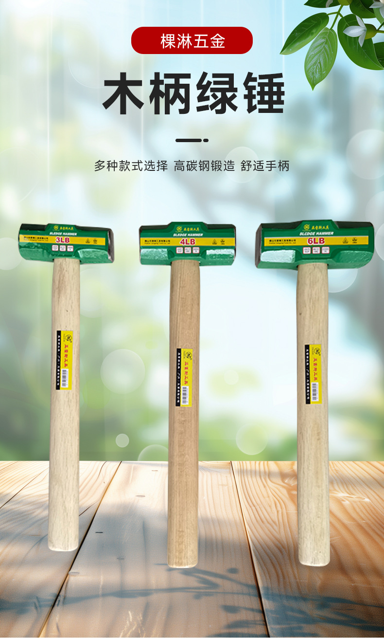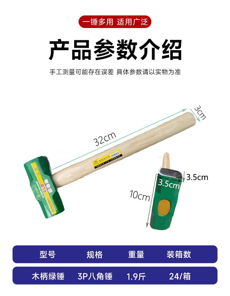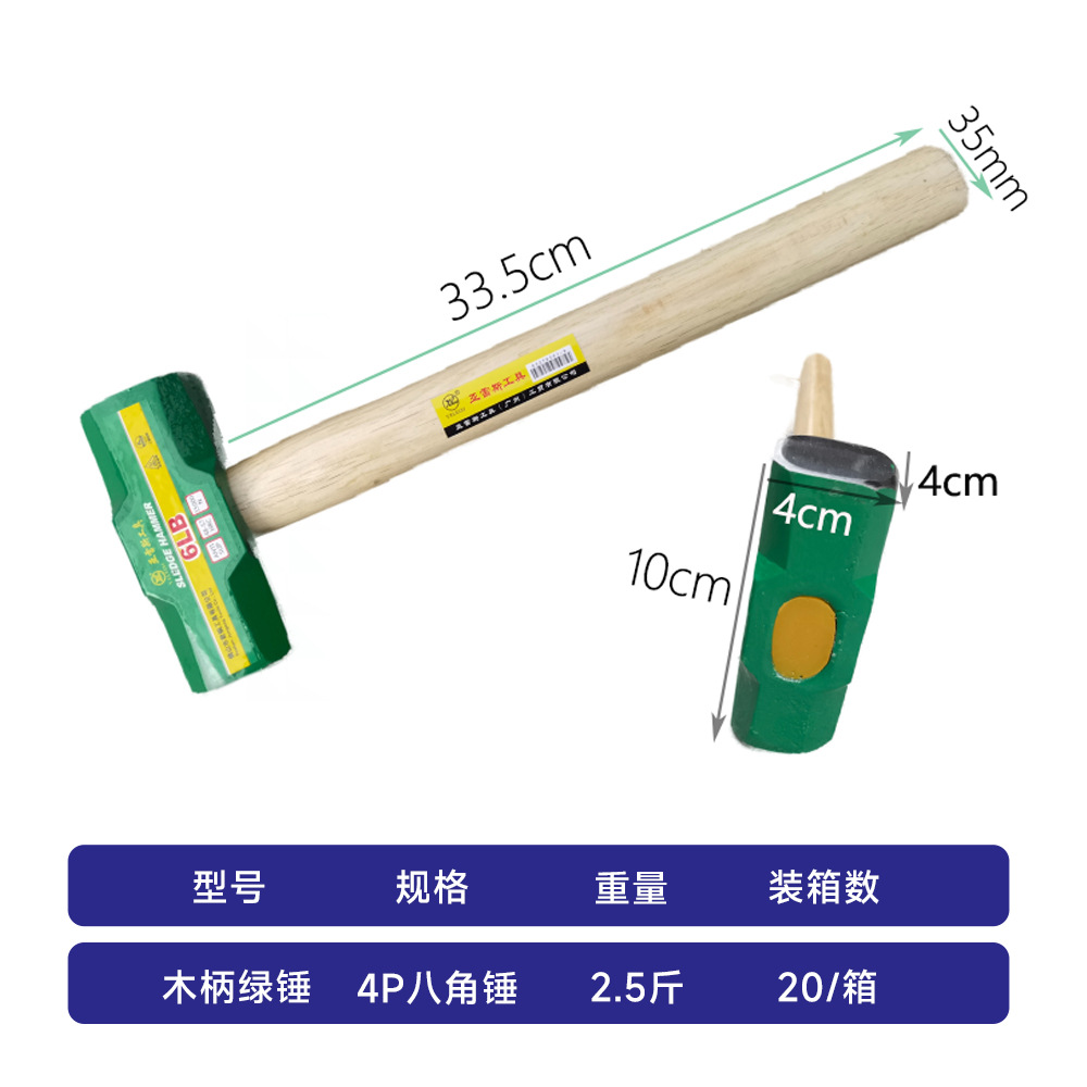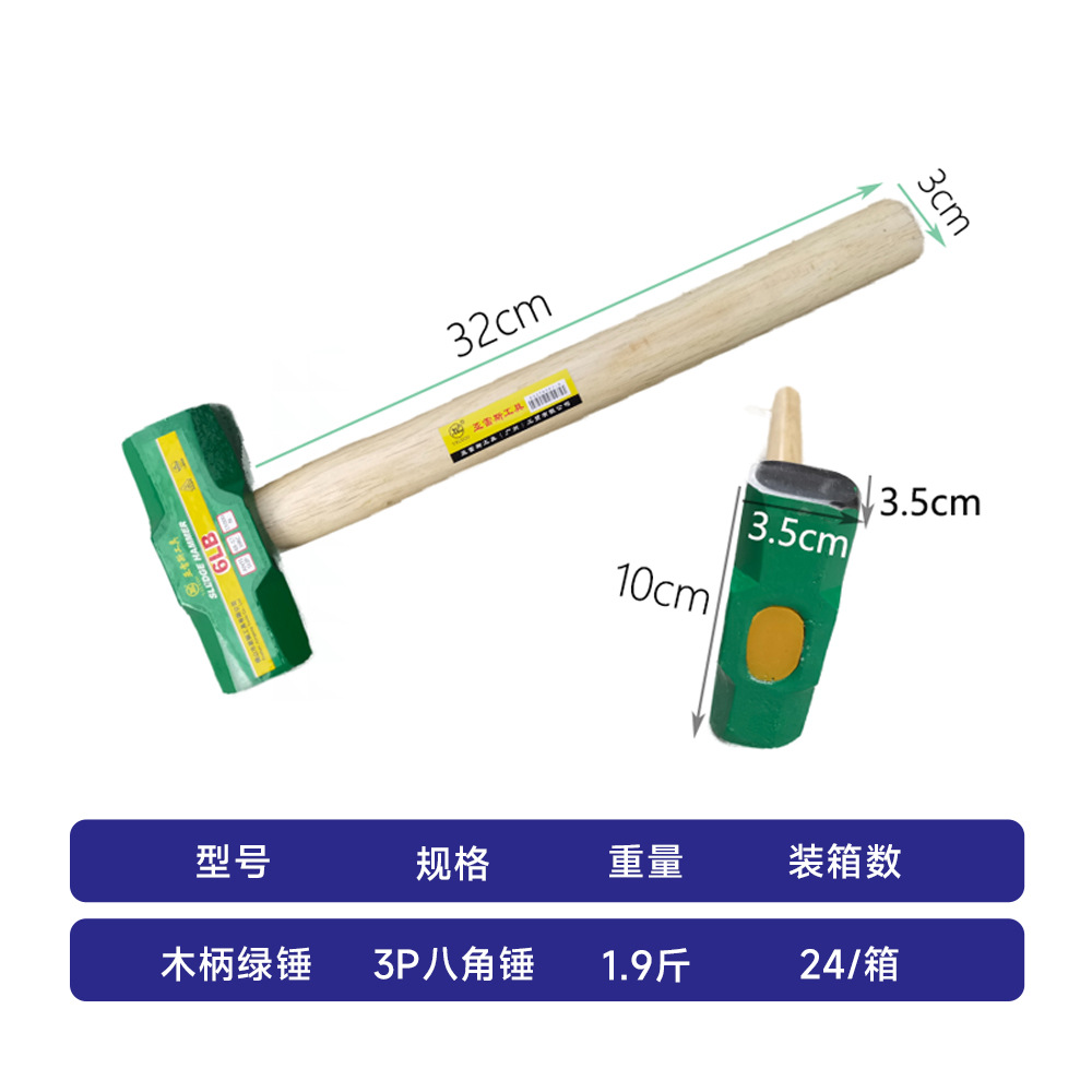 • 3P 팔각형 해머(나무 손잡이 녹색 해머)