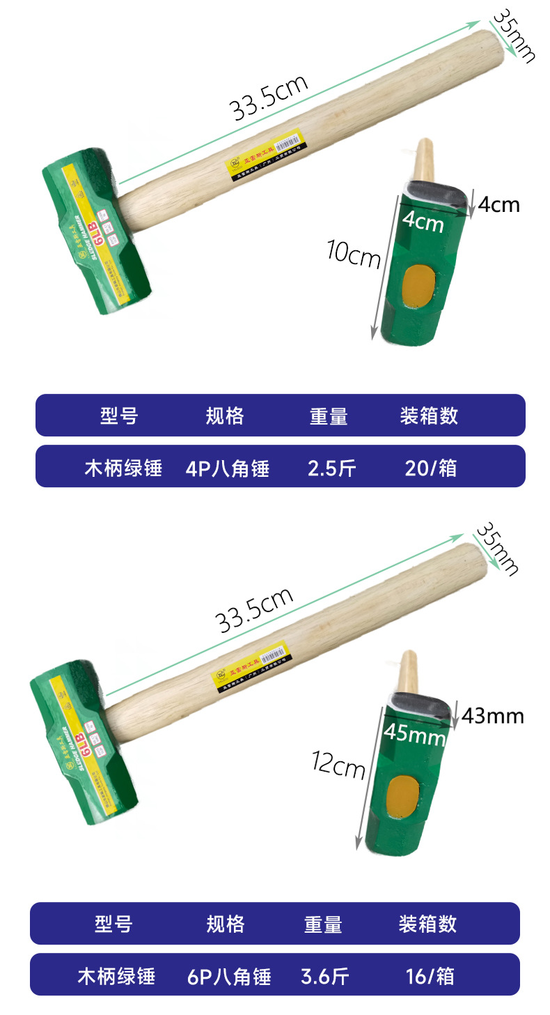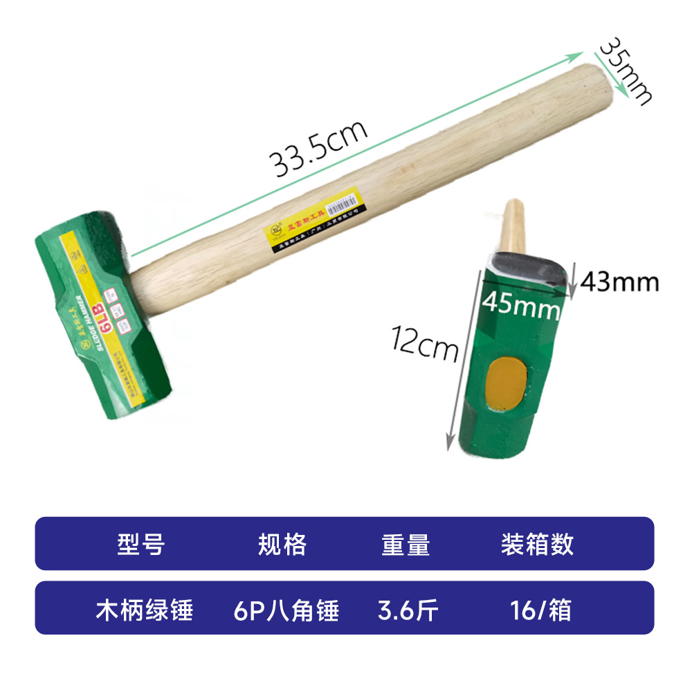 • 6P 팔각형 해머(나무 손잡이 녹색 해머)