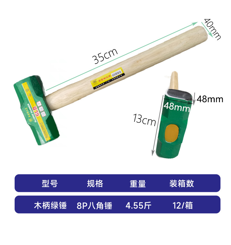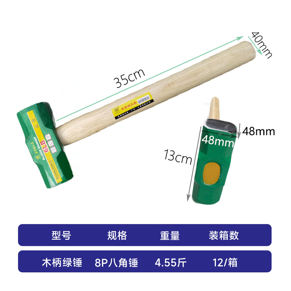• 8P 팔각형 해머(나무 손잡이 녹색 해머)