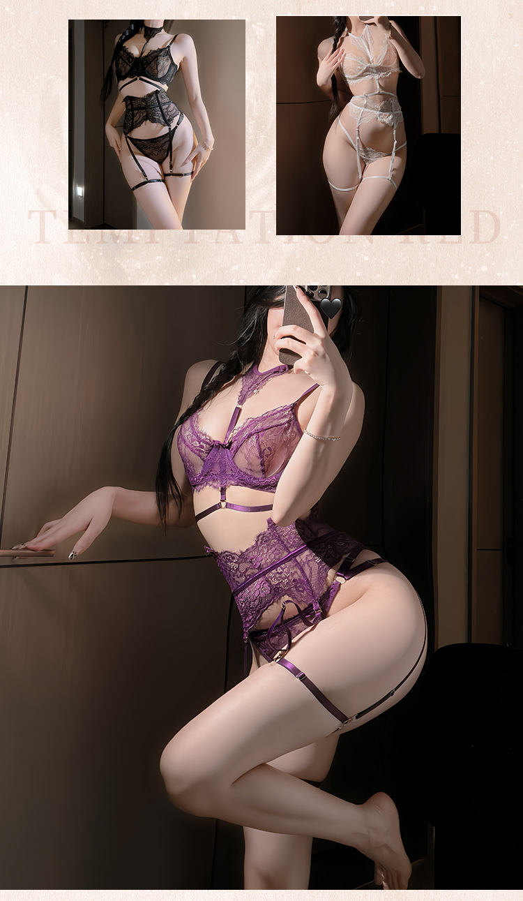 섹시한 란제리 순수 레이스 순수 중공 스트랩 파자마 보라색 허리 유니폼 세트 무료 2111스토어 가기