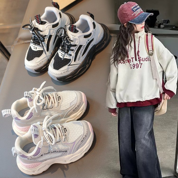 어린이 더블 넷 2025 봄 새로운 싱글 신발 여자 통기성 경량 운동화 소년 캐주얼 패션 토레 신발스토어 가기