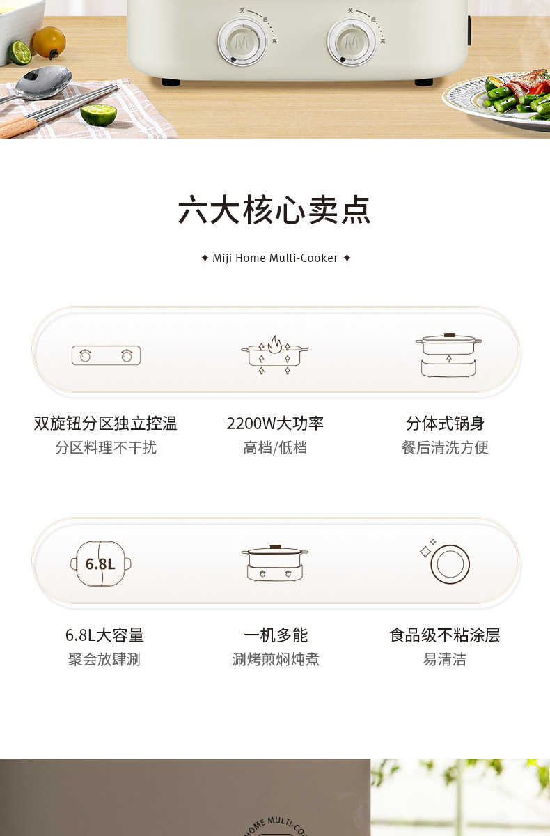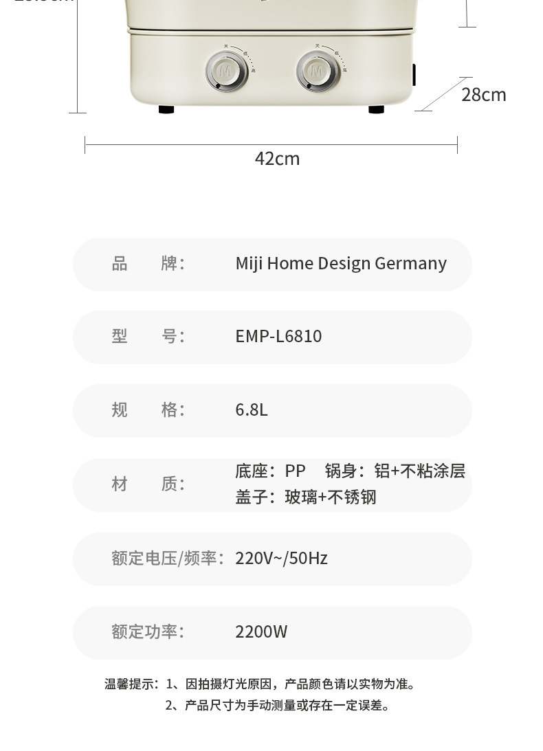 독일 Miji MIJI 다기능 냄비 EMP-L6810 가정용 요리 냄비 대용량 분할 만다린 오리 전기 뜨거운 냄비스토어 가기