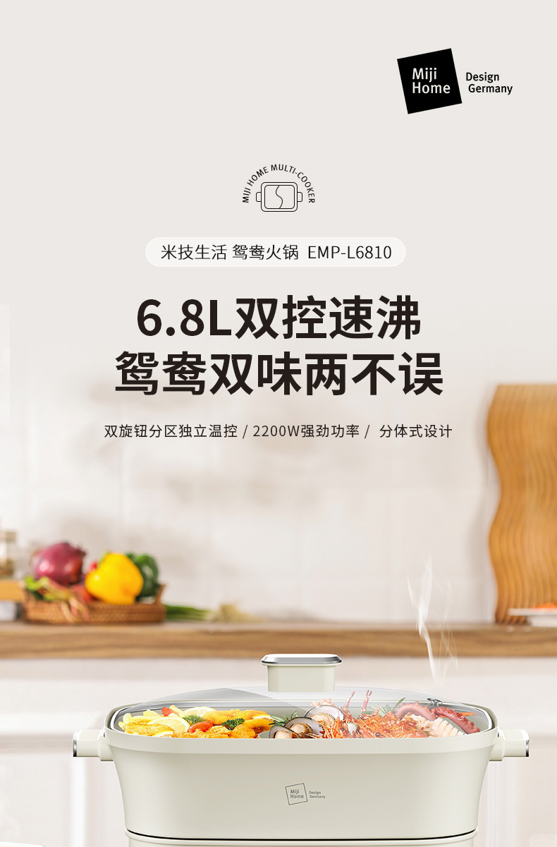 독일 Miji MIJI 다기능 냄비 EMP-L6810 가정용 요리 냄비 대용량 분할 만다린 오리 전기 뜨거운 냄비