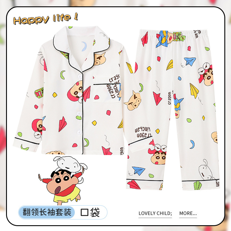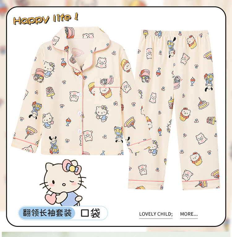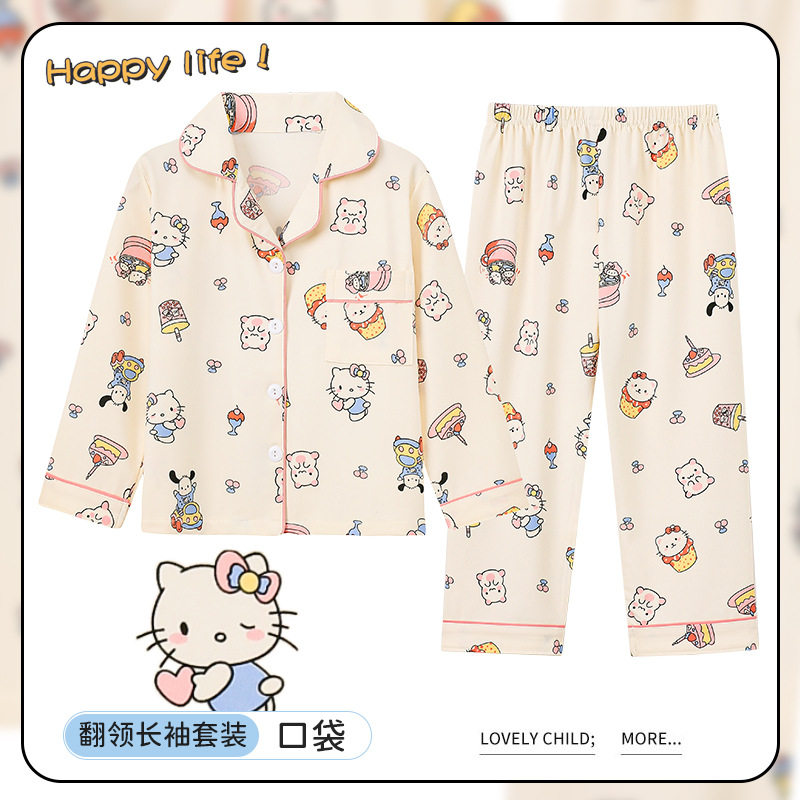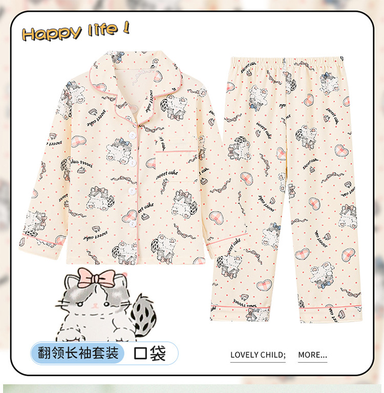 소녀 잠옷 봄과 가을 긴 소매 카디건 얇은 작은 소녀 만화 귀여운 중 큰 어린이 홈 의류 세트