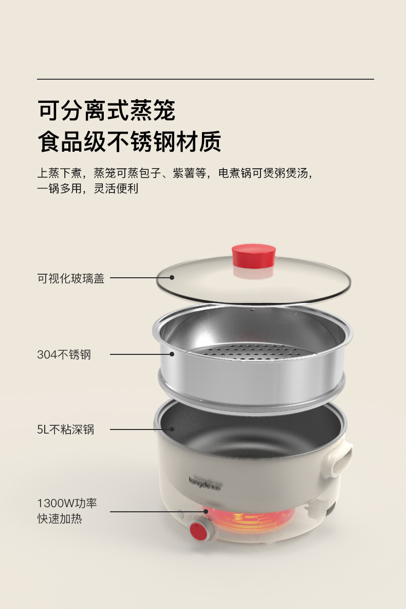 드래곤의 LD-HG513A 전기 뜨거운 냄비 전기 요리 냄비 다목적 냄비 가정용 다기능 5L 용량 전기 기선 전기 뜨거운 냄비스토어 가기