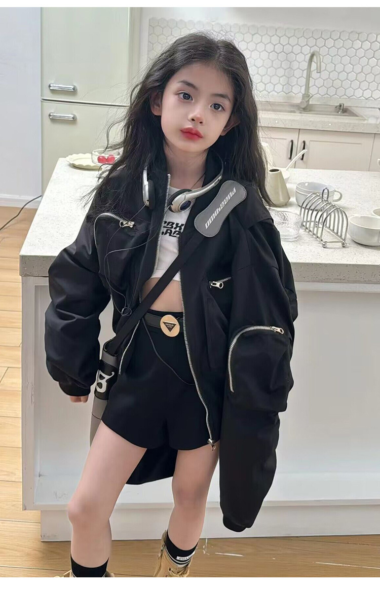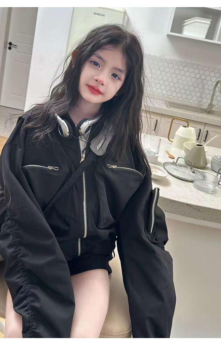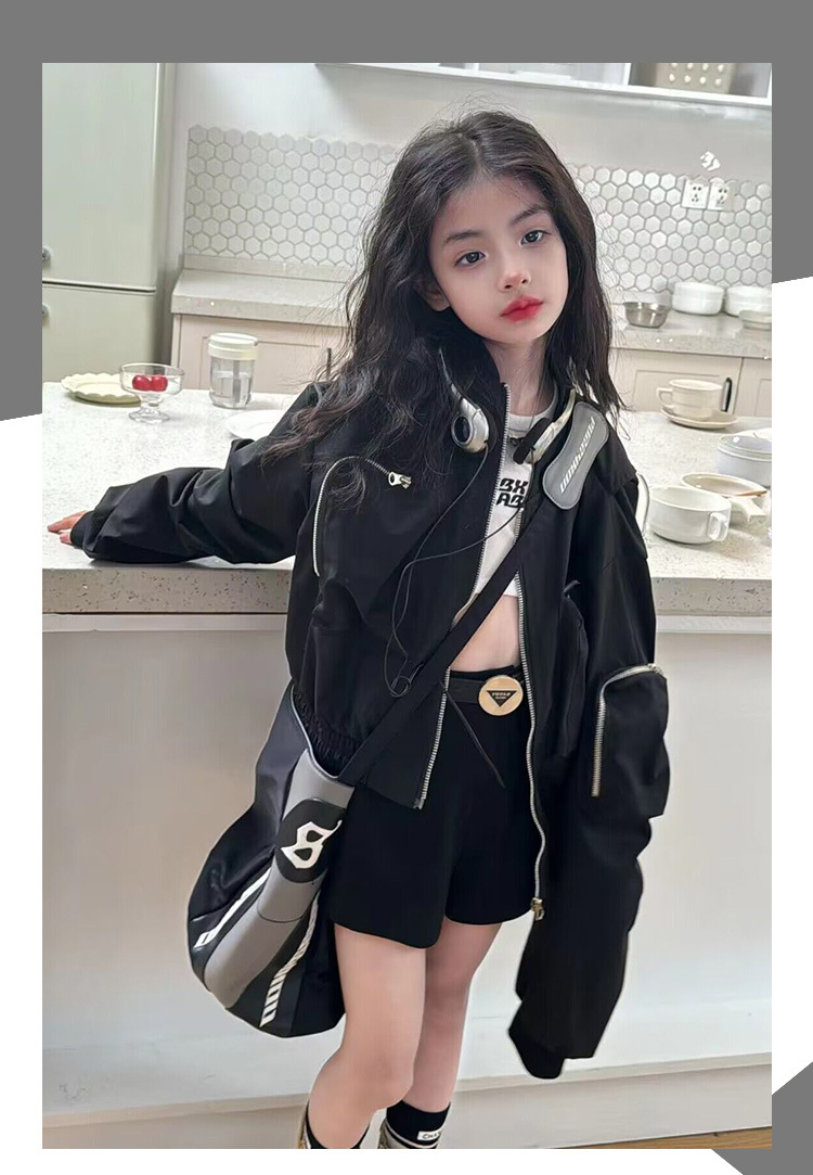 소녀 봄 코트 2025 새로운 어린이 봄과 가을 한국 스타일 서양식 쇼트 탑 큰 어린이 봄 작업 자켓