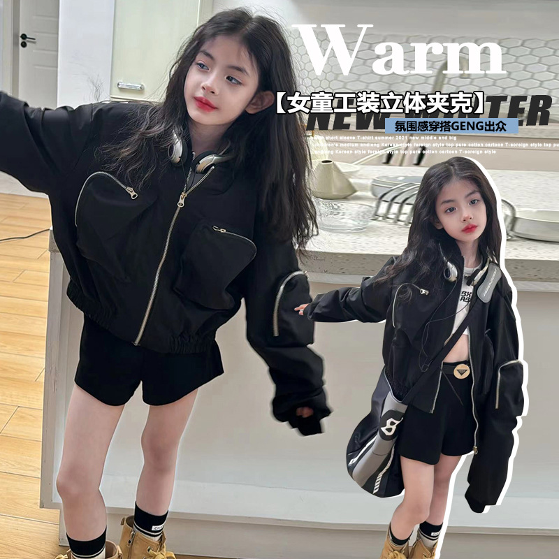 소녀 봄 코트 2025 새로운 어린이 봄과 가을 한국 스타일 서양식 쇼트 탑 큰 어린이 봄 작업 자켓스토어 가기