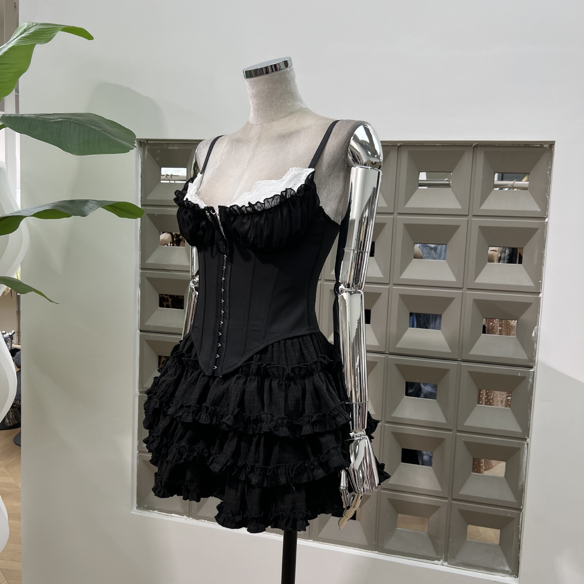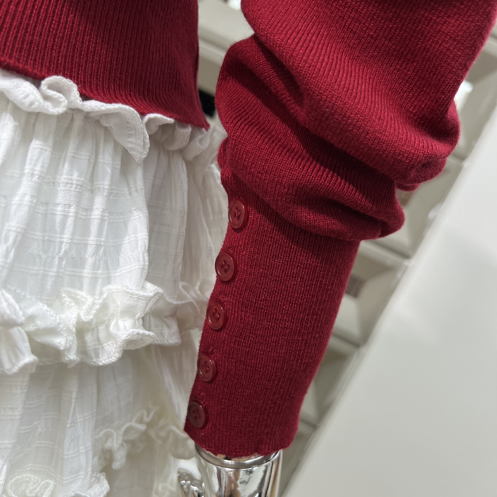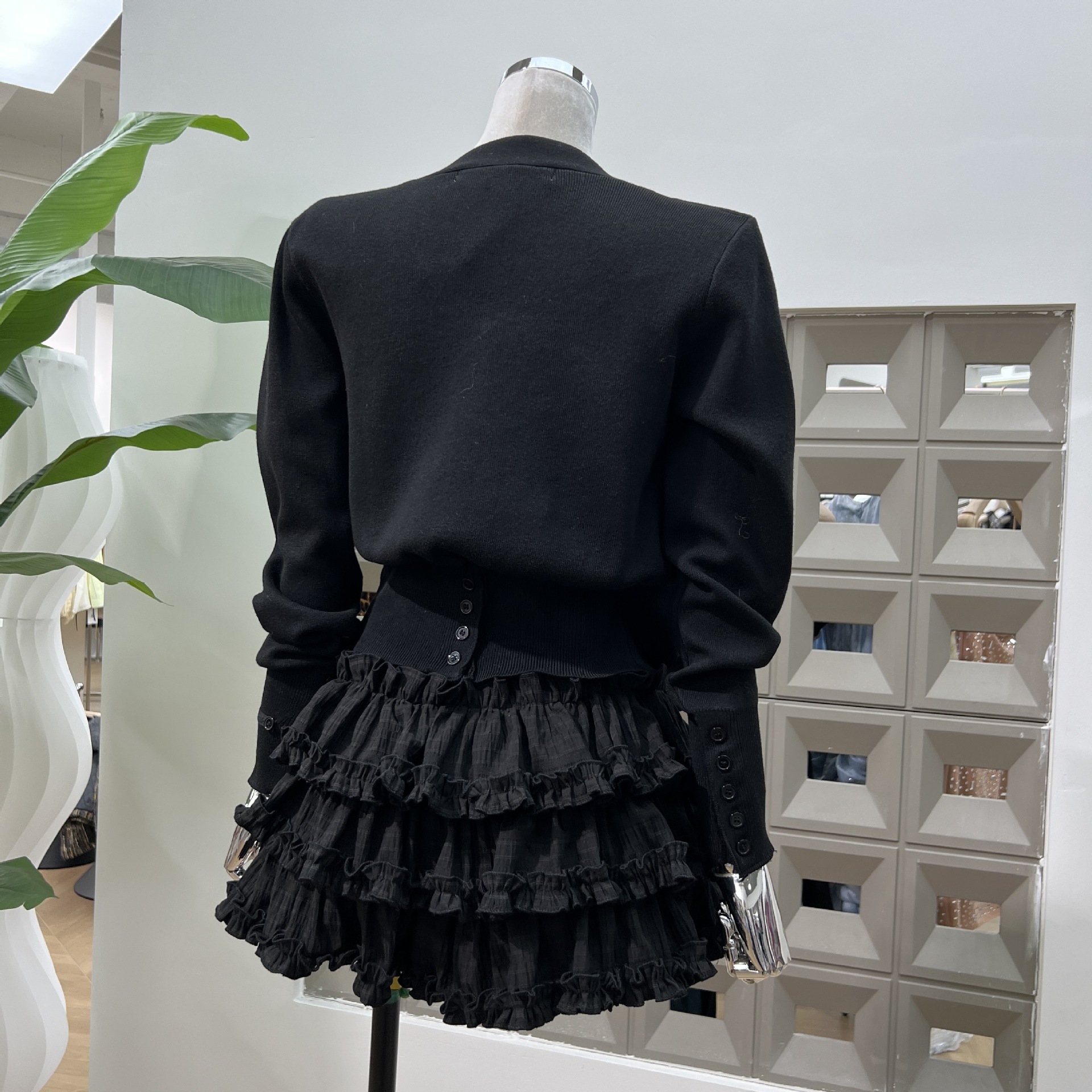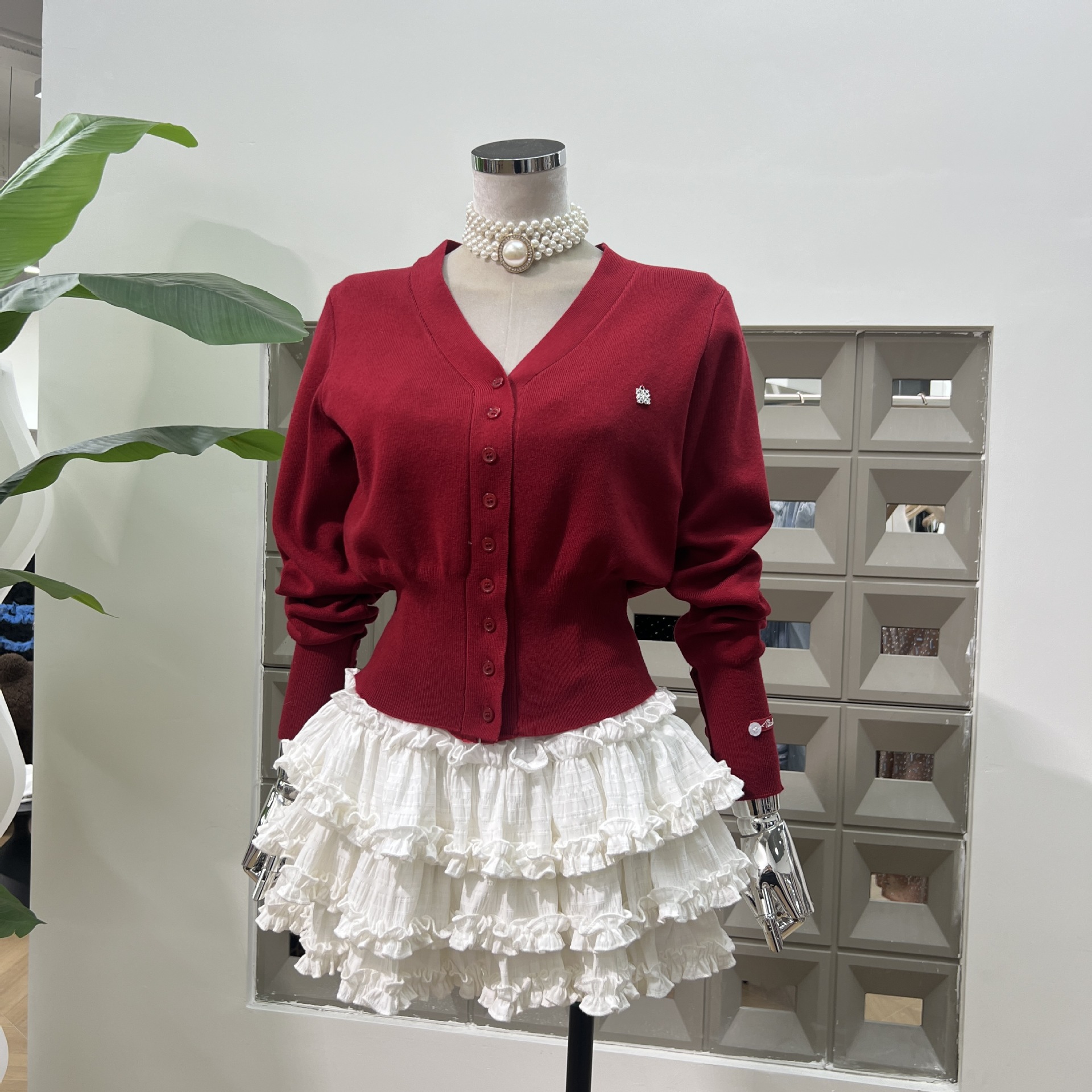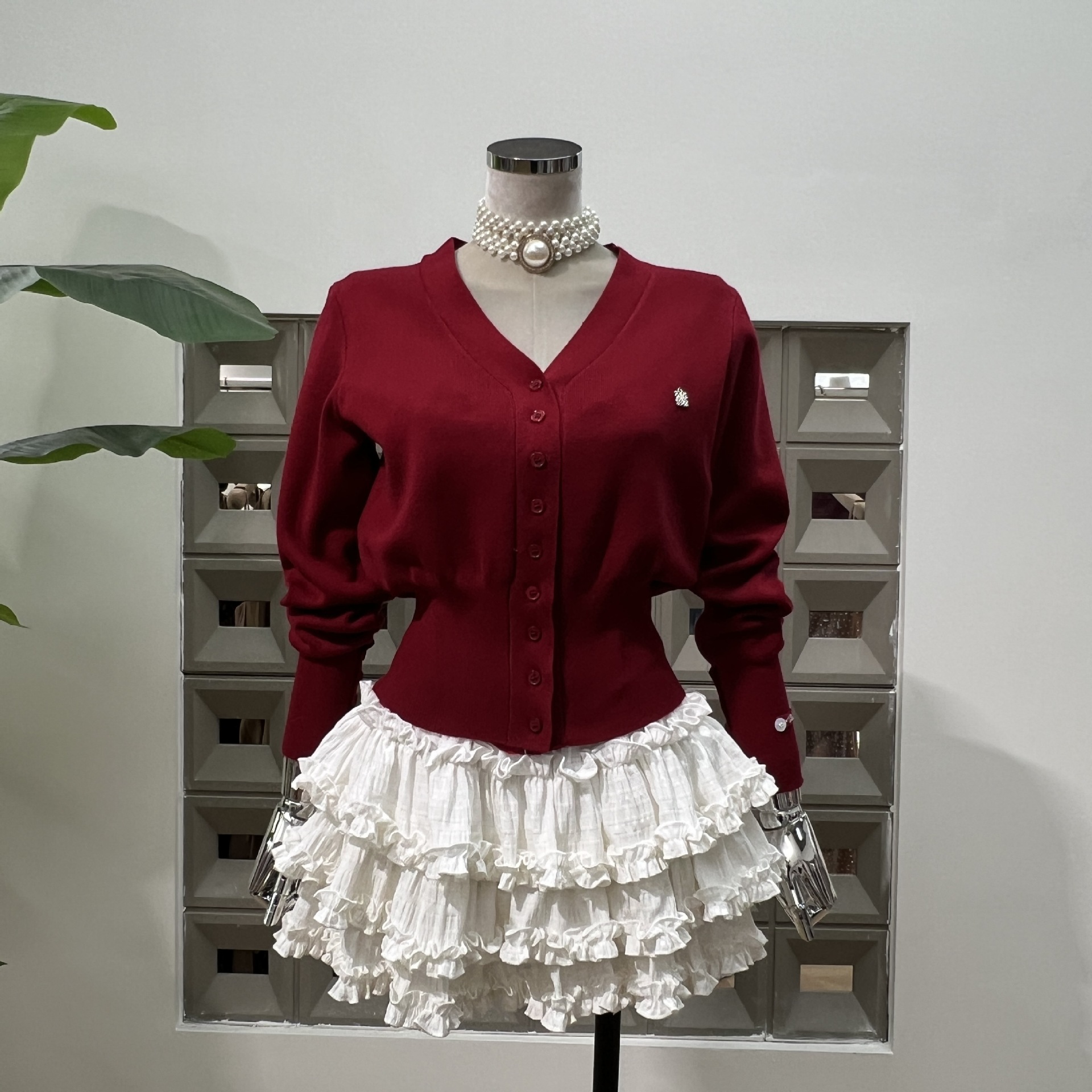 아마존 생선 뼈 슬림 슬링 케이크 소녀의 안티 워킹 스커트 니트 허리 V 넥 카디건 3 피스 세트
