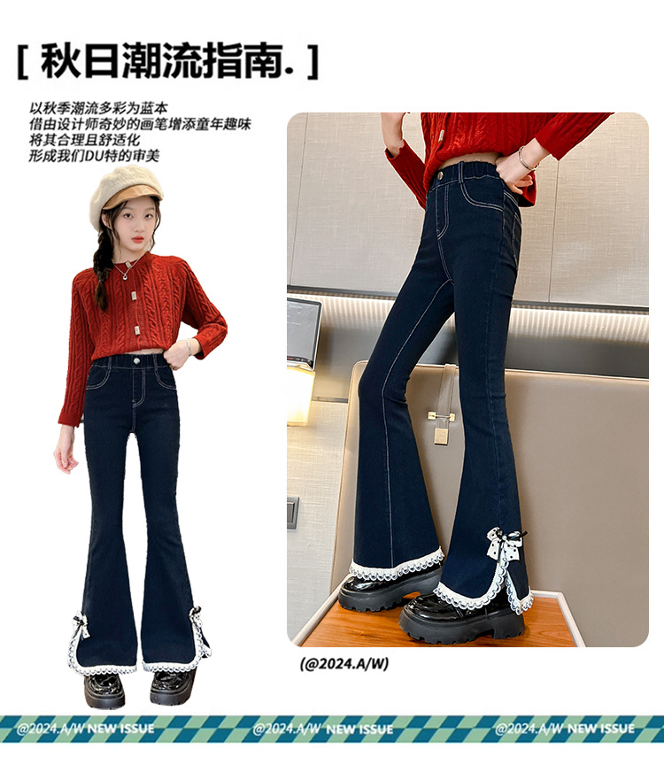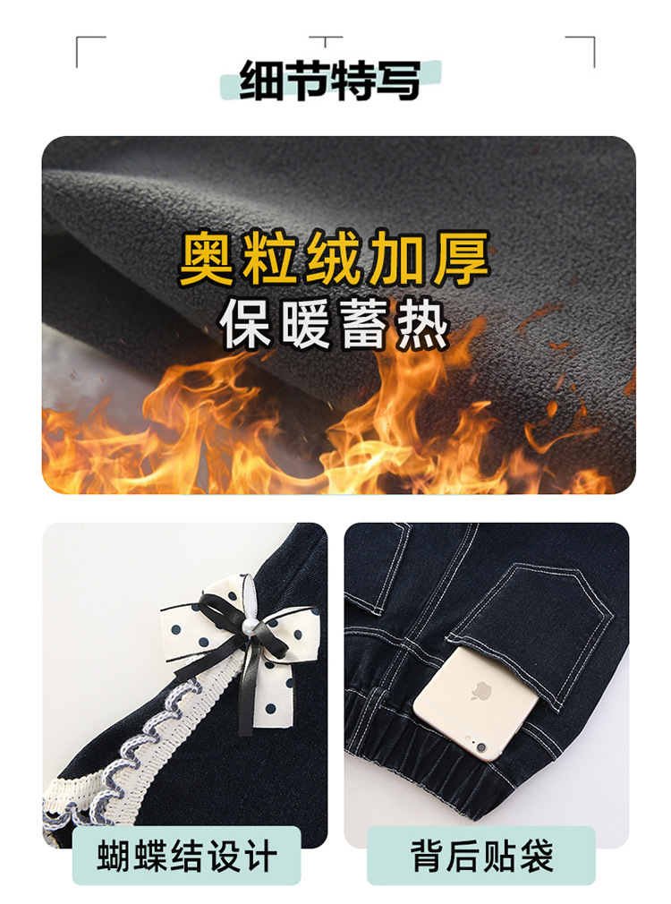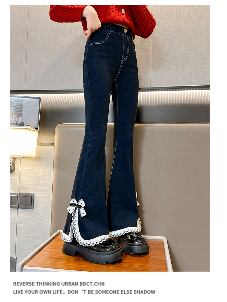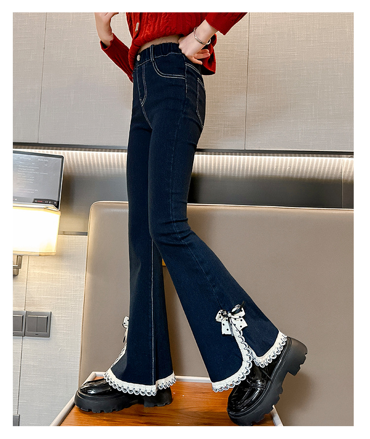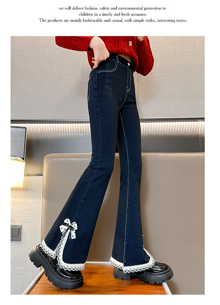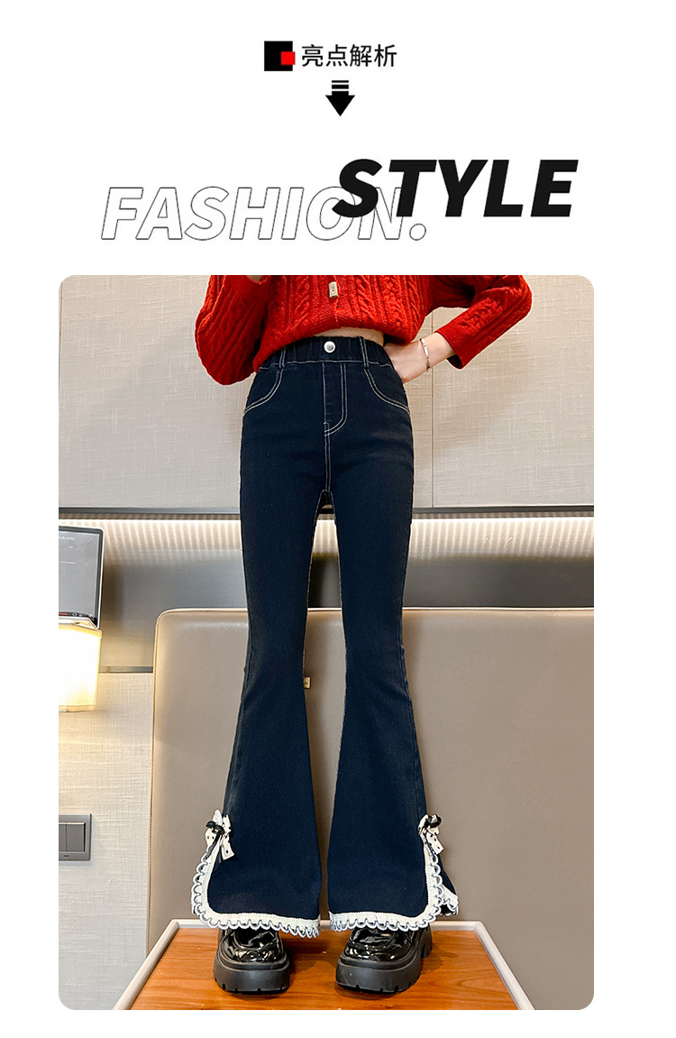 소녀 꽃 바지 봄과 가을 큰 어린이 유행 서양식 청바지 소녀의 가을과 겨울 기모 탄성 가을 어린이 바지스토어 가기