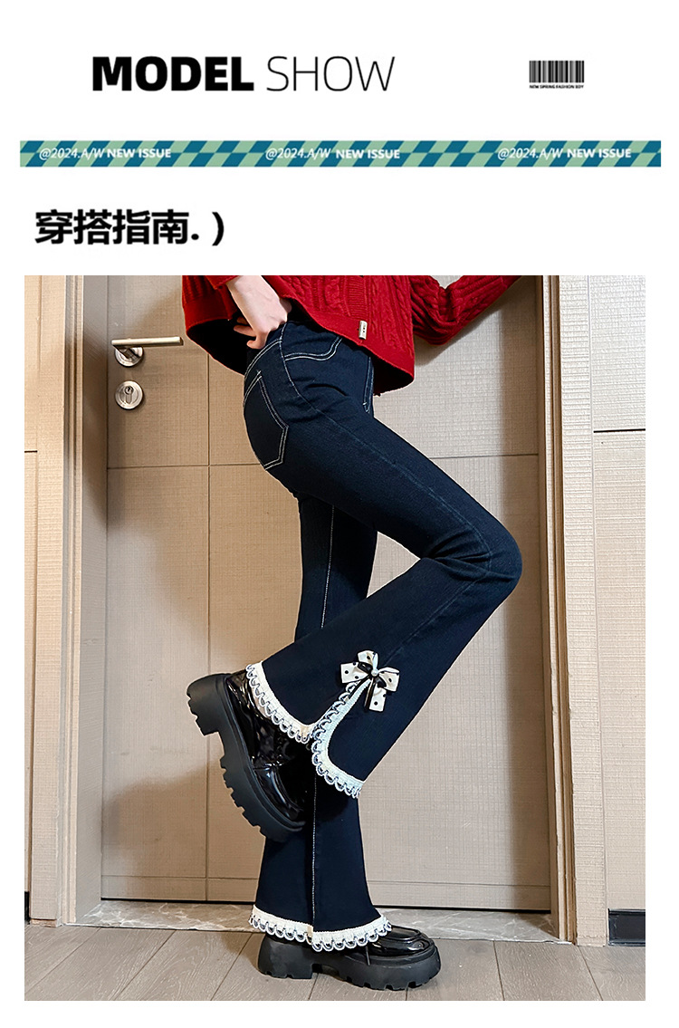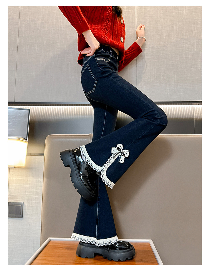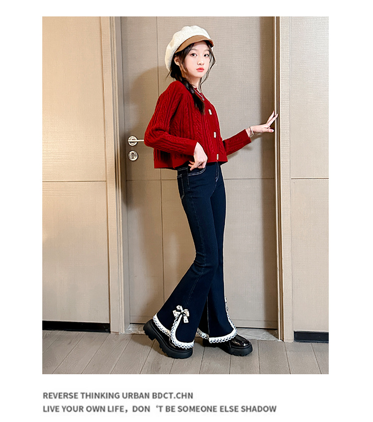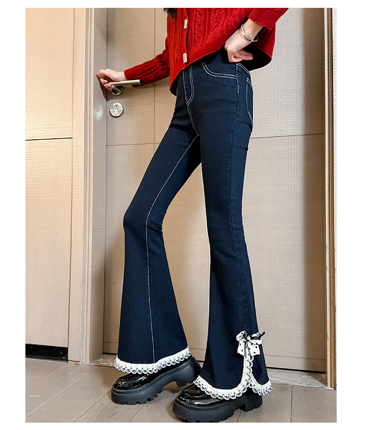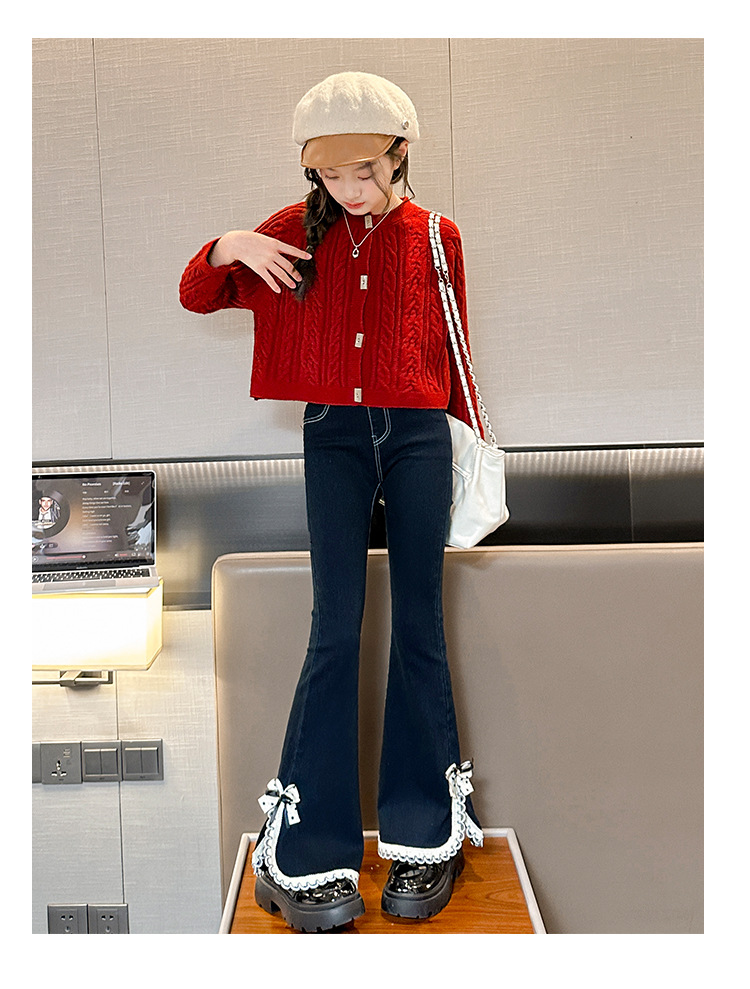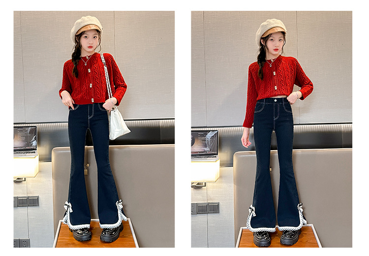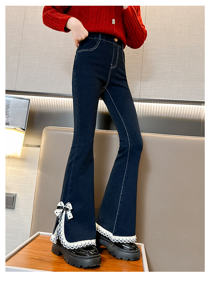 소녀 꽃 바지 봄과 가을 큰 어린이 유행 서양식 청바지 소녀의 가을과 겨울 기모 탄성 가을 어린이 바지스토어 가기