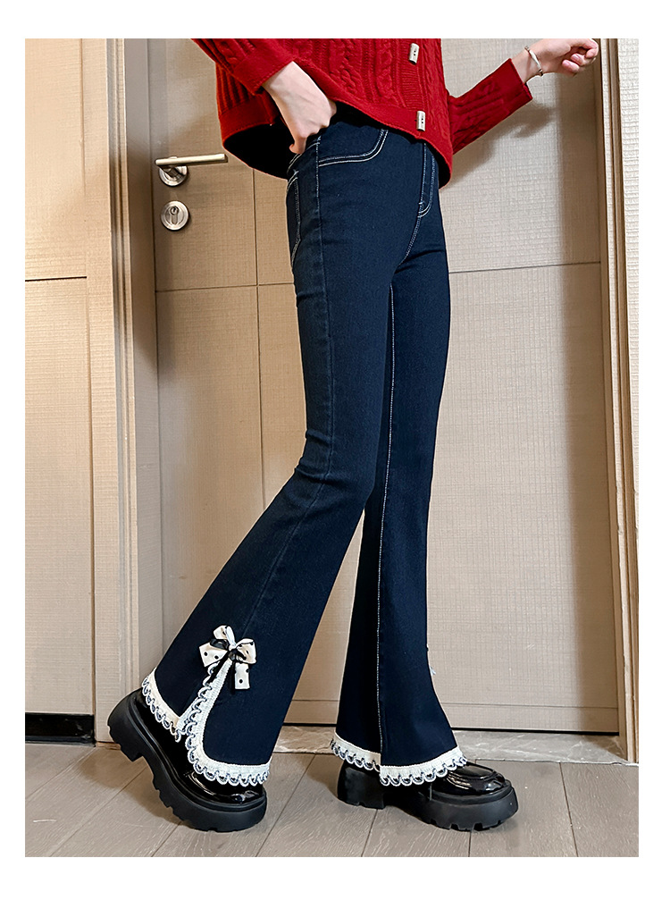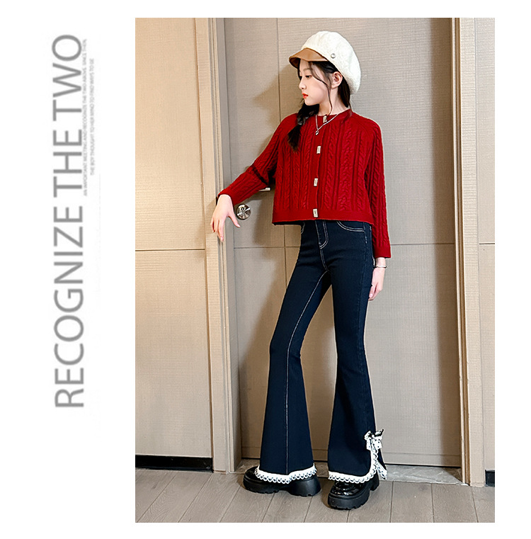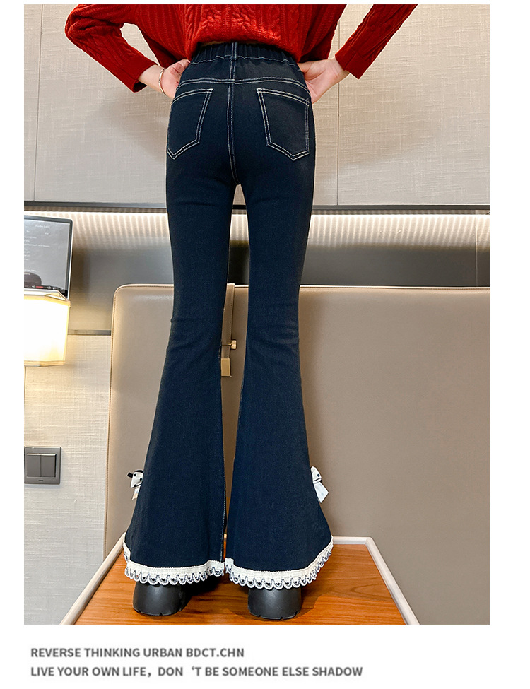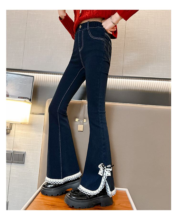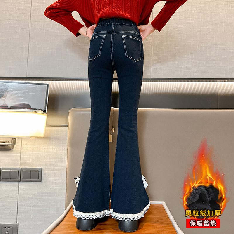 소녀 꽃 바지 봄과 가을 큰 어린이 유행 서양식 청바지 소녀의 가을과 겨울 기모 탄성 가을 어린이 바지