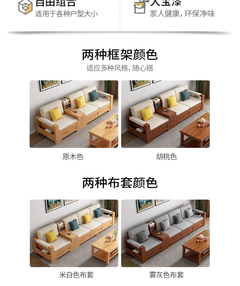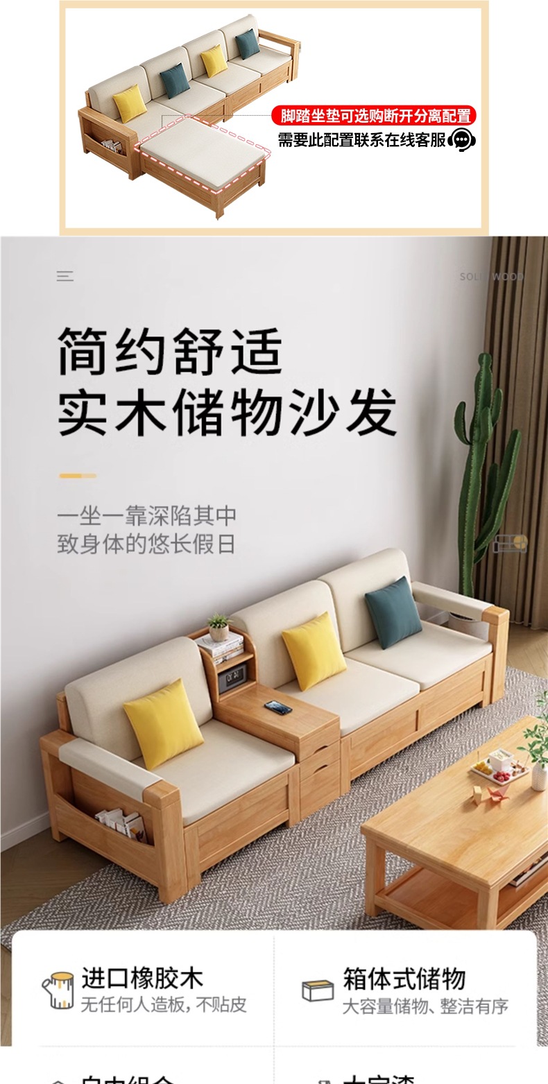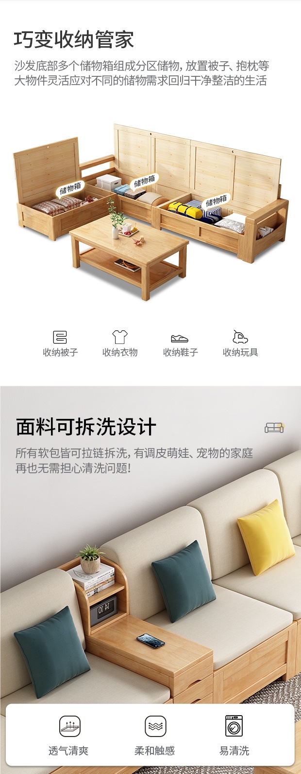 남 중국 가구 겨울과 여름 듀얼 사용 솔리드 우드 스토리지 박스 소파 북유럽 작은 아파트 거실 빛 럭셔리 간단한 소파 조합