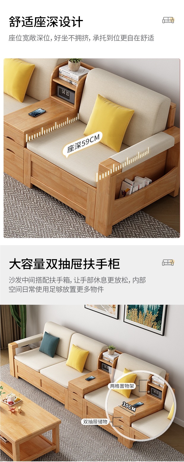 남 중국 가구 겨울과 여름 듀얼 사용 솔리드 우드 스토리지 박스 소파 북유럽 작은 아파트 거실 빛 럭셔리 간단한 소파 조합스토어 가기