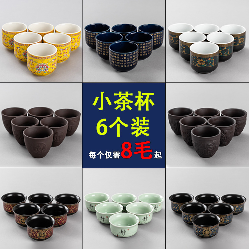 쿵푸 작은 차 컵 6 팩 세라믹 찻잔 차 그릇 가정용 차 시음 컵 보라색 모래 마스터 컵 파란색과 흰색 도자기 거품 도매스토어 가기