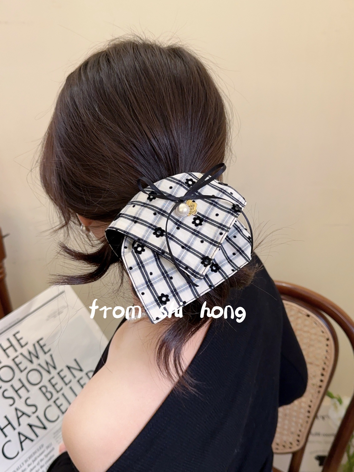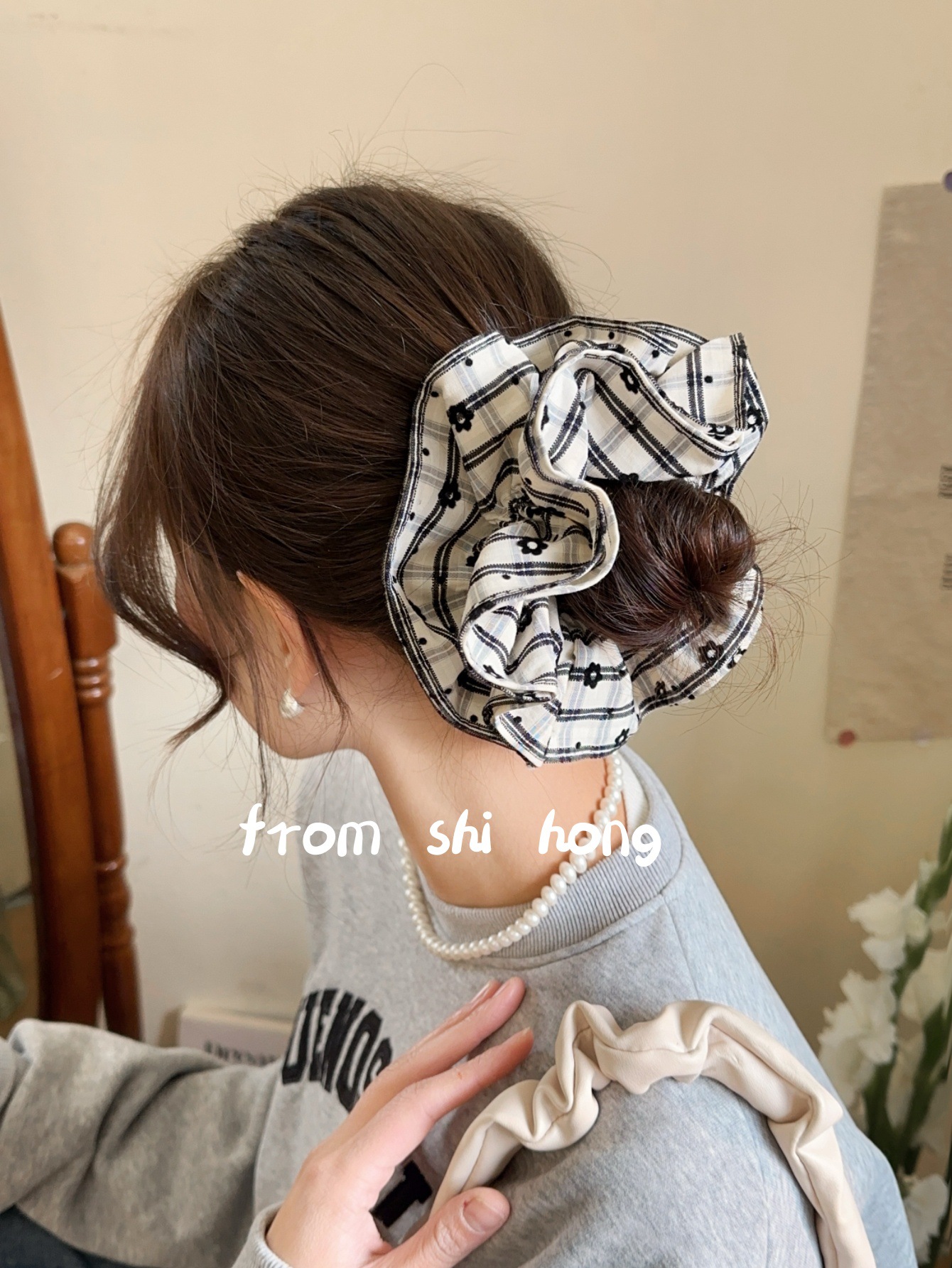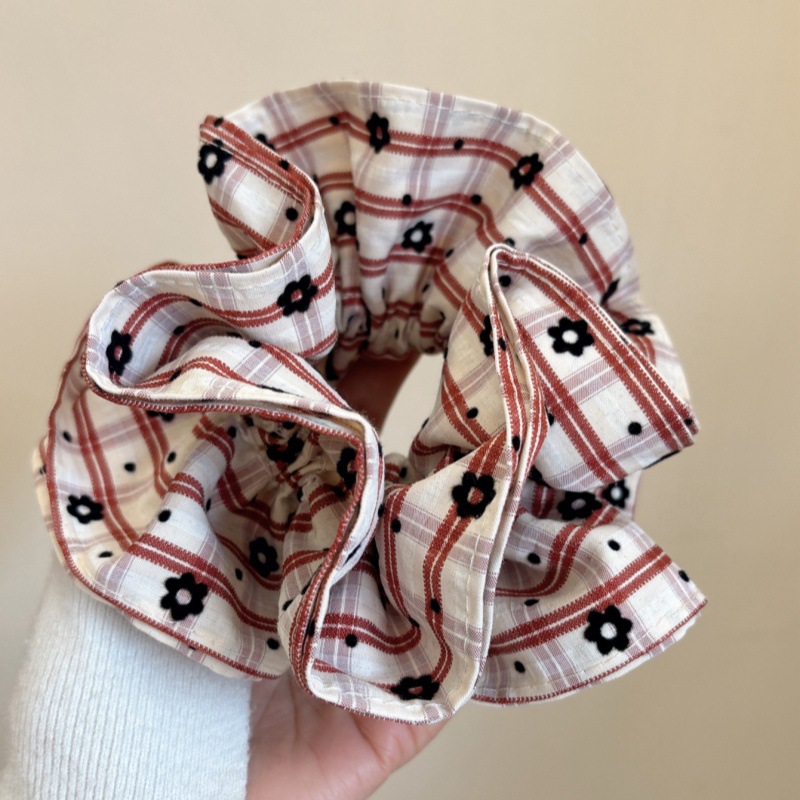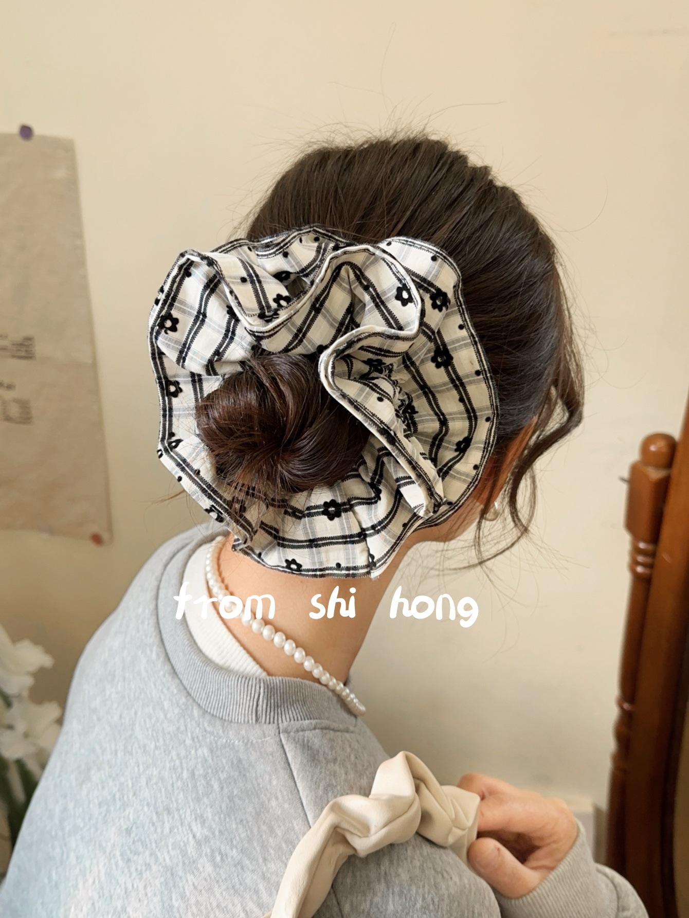 작은 검은 꽃 패턴 큰 장내 링 복고풍 광장 타월 고급 포니 테일 헤어 링 헤어 코드 헤어 액세서리 새로운스토어 가기