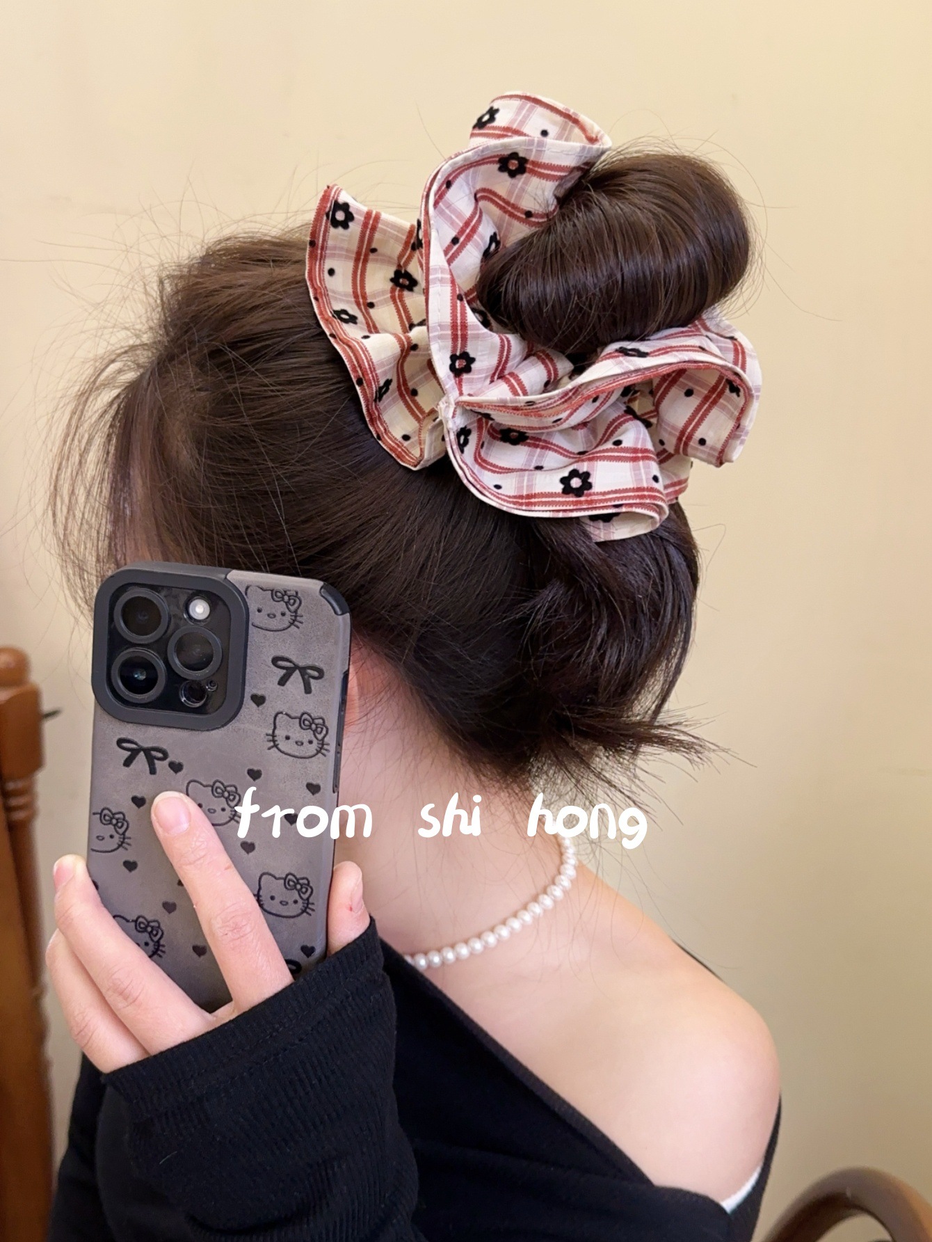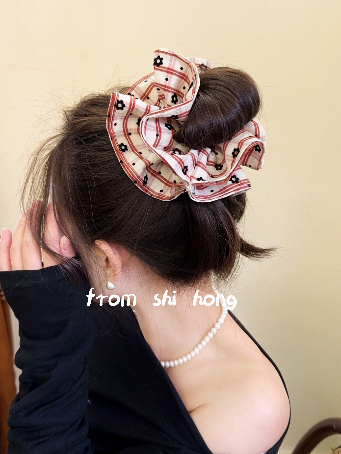 작은 검은 꽃 패턴 큰 장내 링 복고풍 광장 타월 고급 포니 테일 헤어 링 헤어 코드 헤어 액세서리 새로운