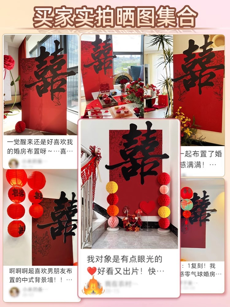 Da Xi Zi Paste kt 보드 배경 벽 장식 결혼식 여자 침실 웨딩 룸 레이아웃 새 집 거실 세트스토어 가기