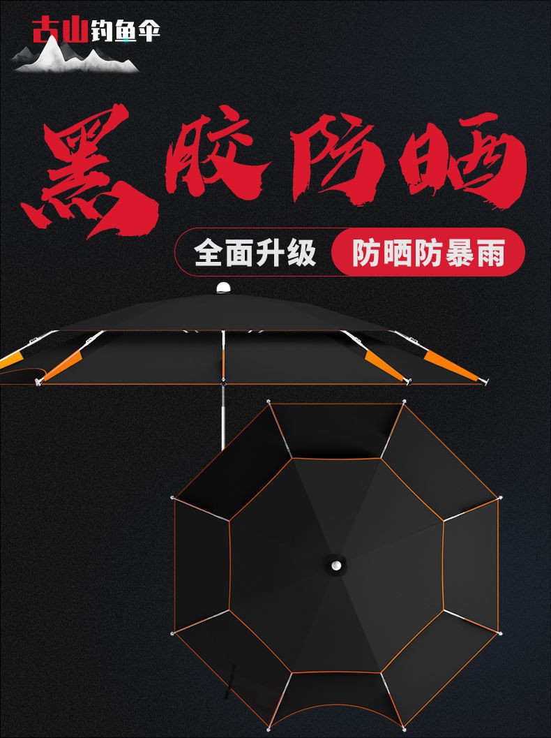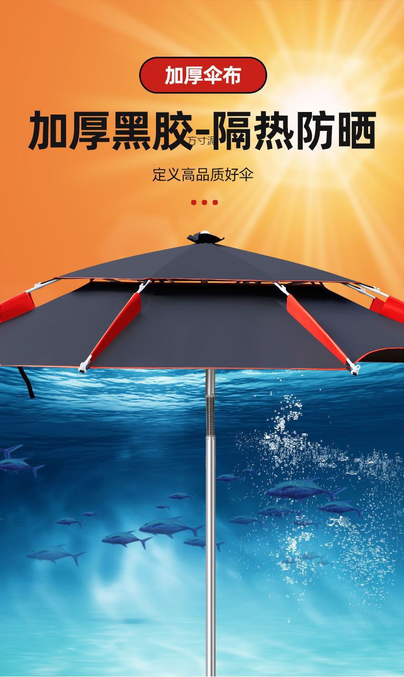 두꺼운 검은 고무 낚시 우산 2.6 미터 폭풍우 낚시 우산 2.4 두꺼운 선 스크린 우산 생선 우산 차양 우산 도매스토어 가기