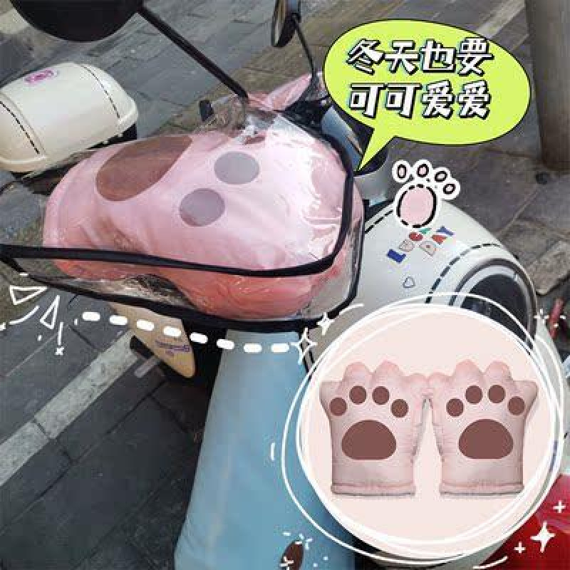 절묘한 고양이 발톱 전기 오토바이 손잡이 덮개 겨울 따뜻한 트롤리 장갑 방수 앞 유리 기모 두꺼운 면 손잡이 덮개스토어 가기
