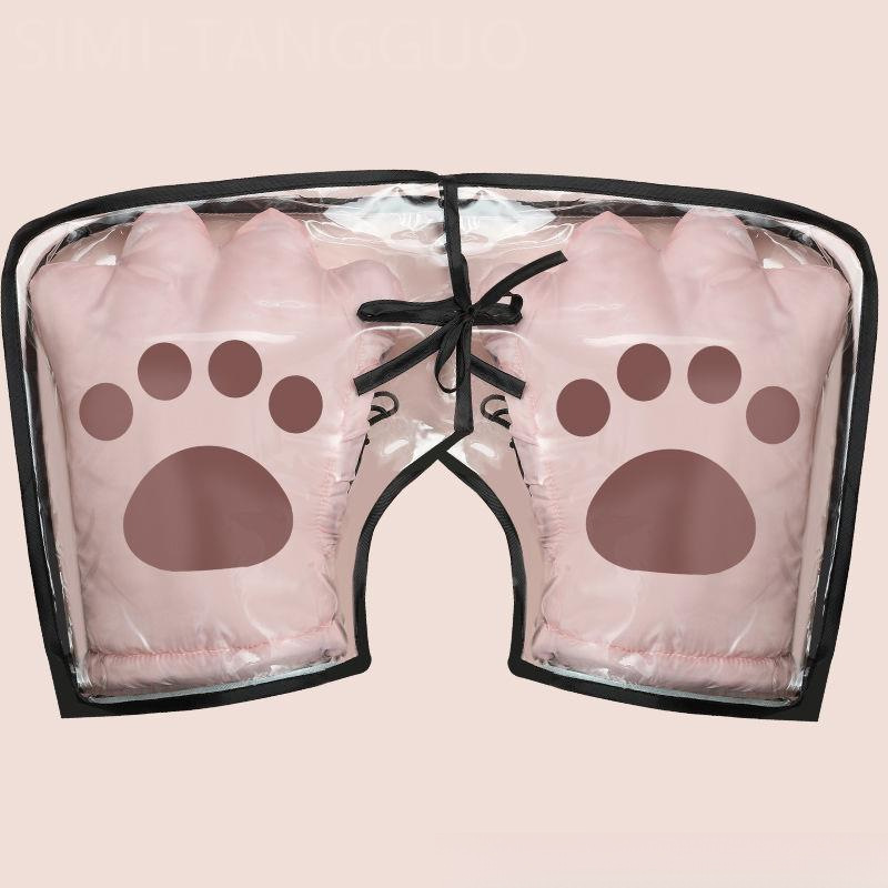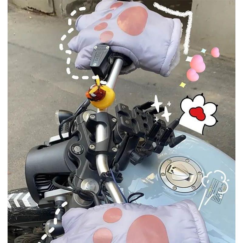 절묘한 고양이 발톱 전기 오토바이 손잡이 덮개 겨울 따뜻한 트롤리 장갑 방수 앞 유리 기모 두꺼운 면 손잡이 덮개