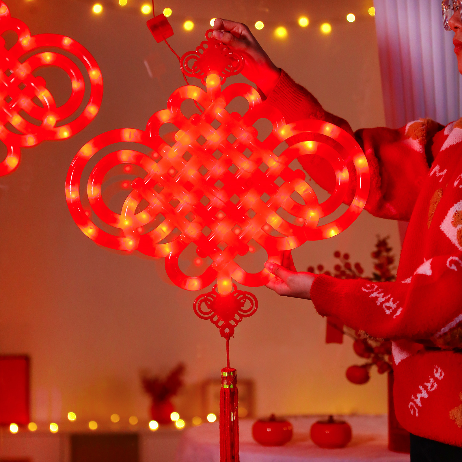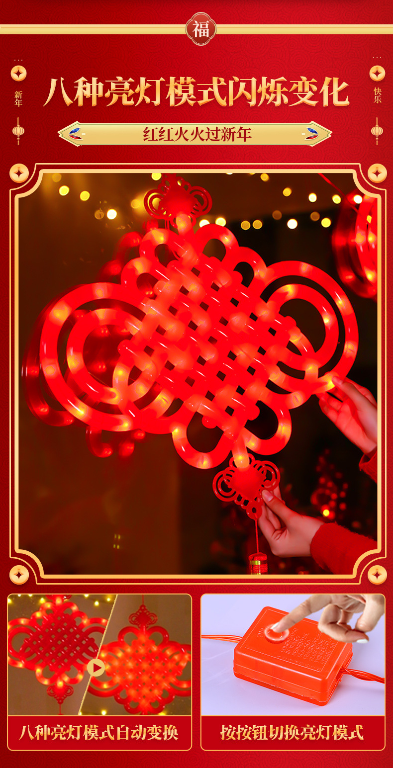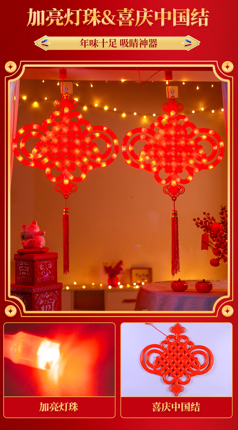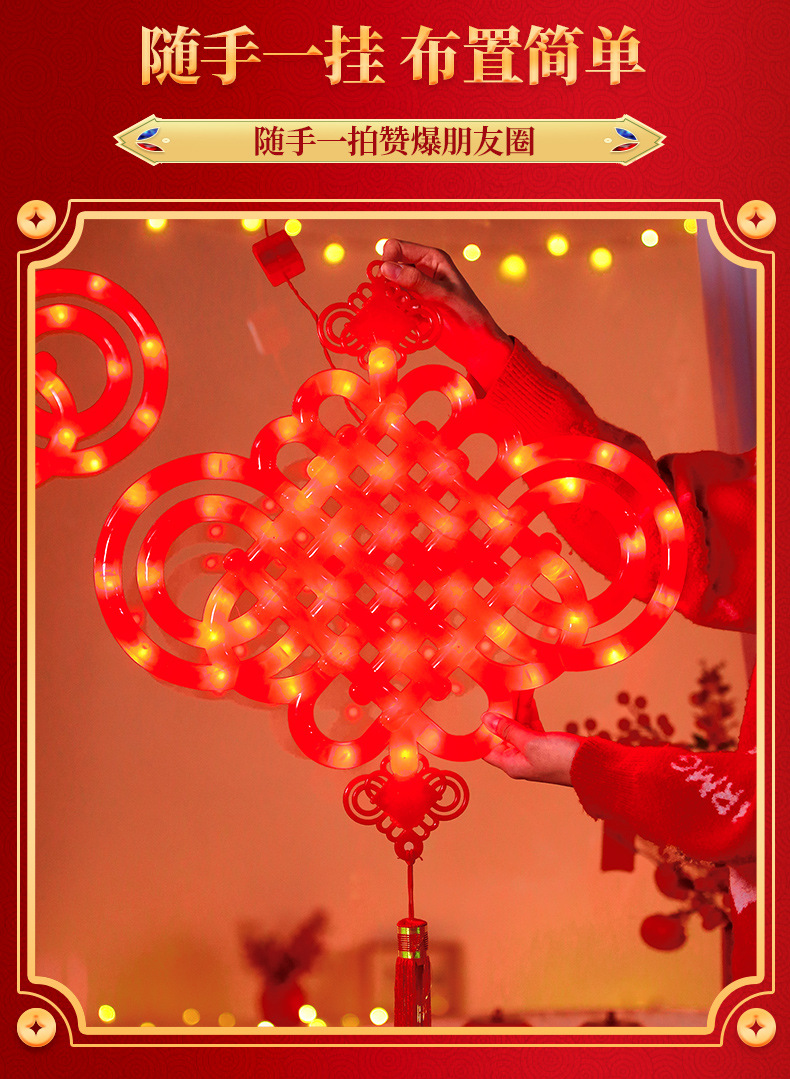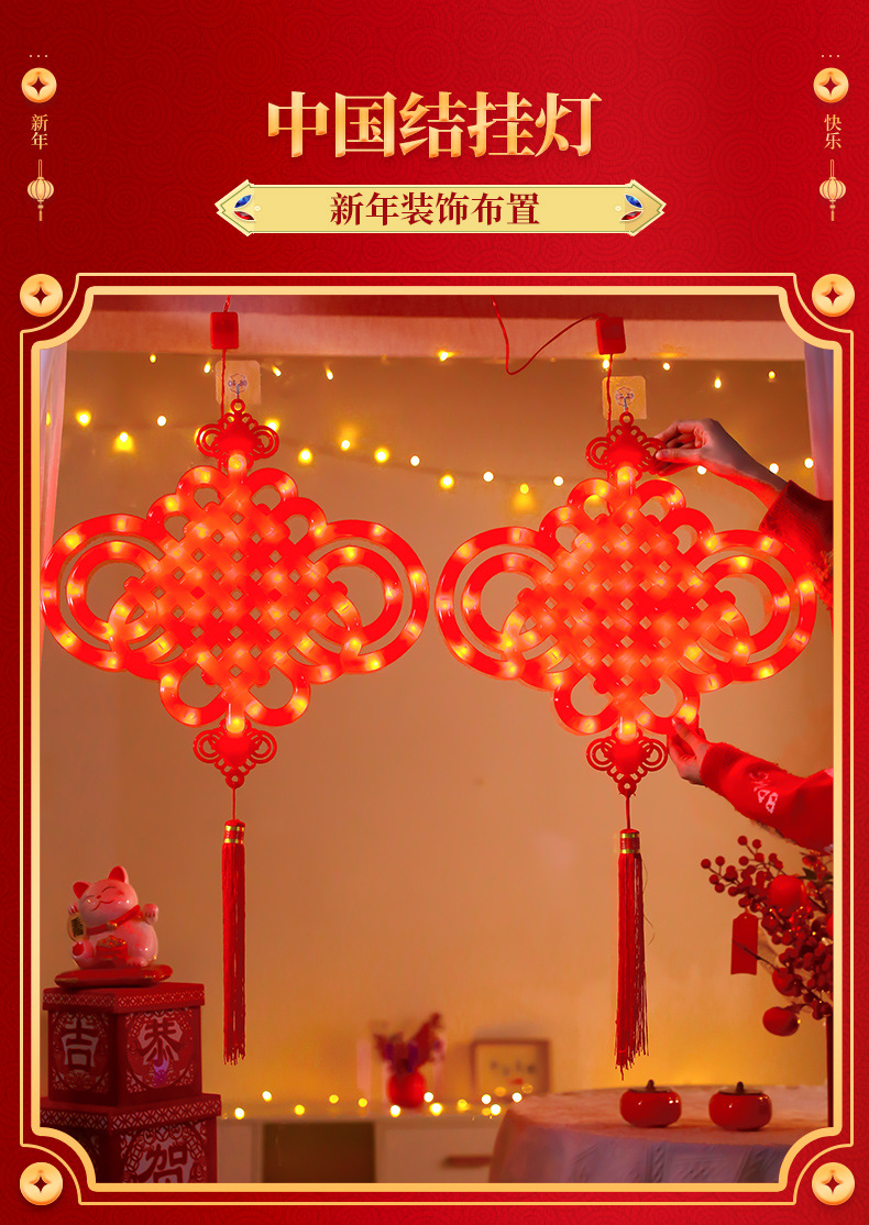 새로운 빛나는 중국 매듭 LED 랜턴 새해 봄 축제 장식 실내 유리 창 분위기 장식 펜던트스토어 가기