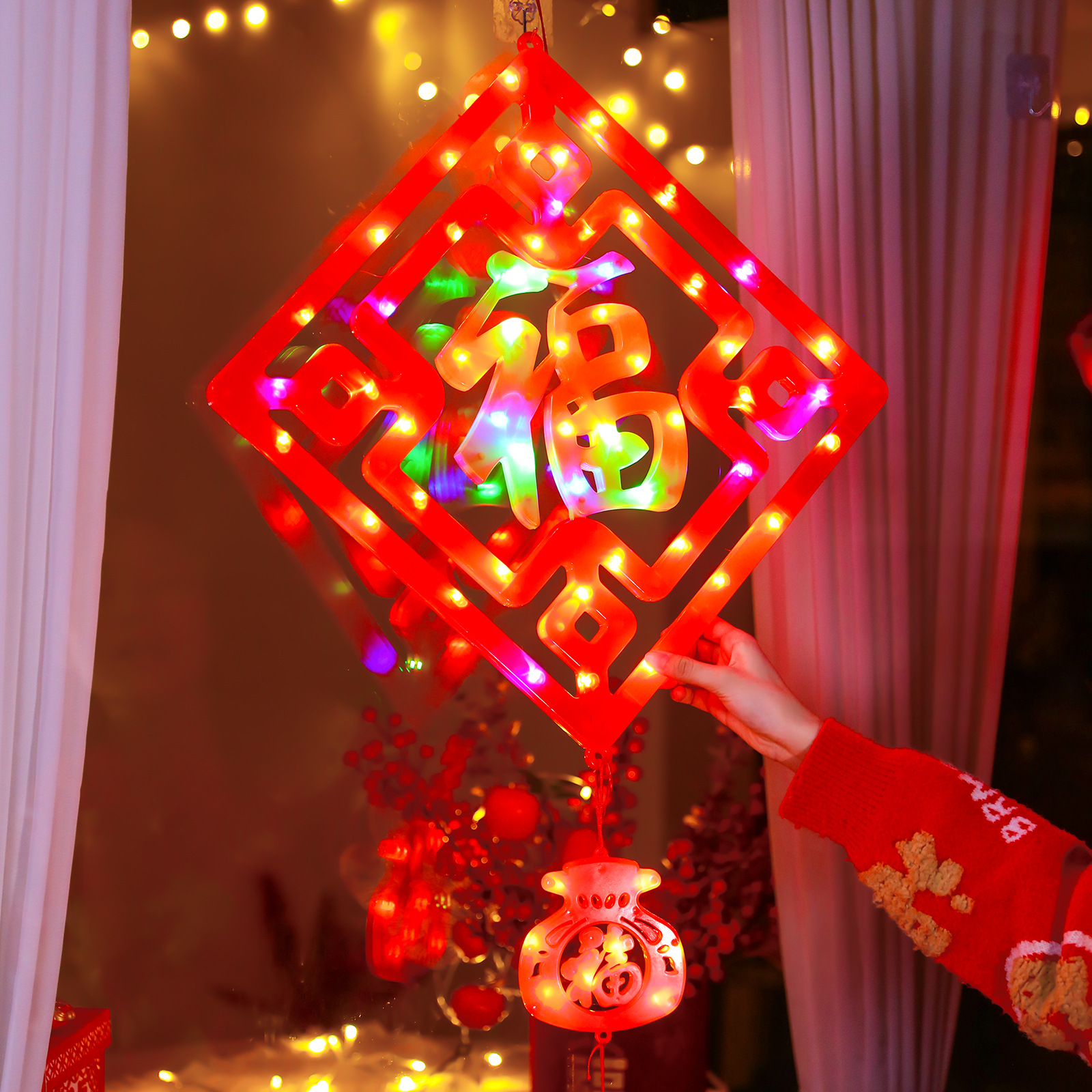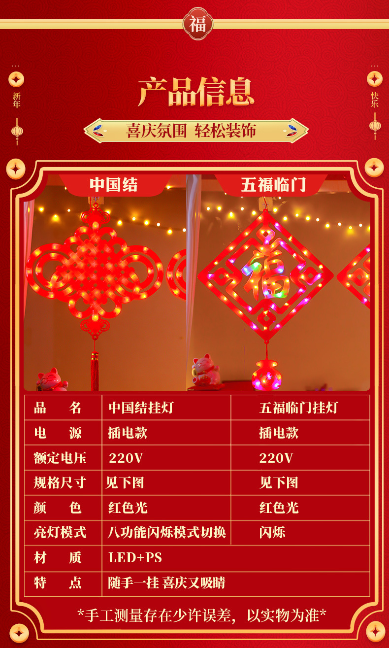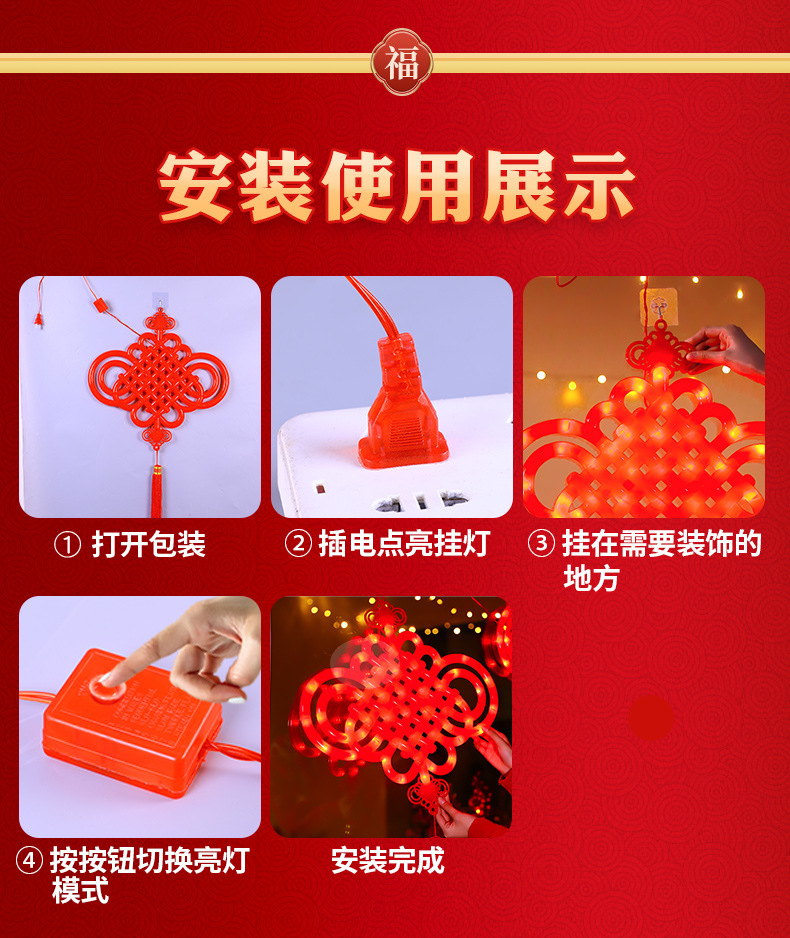 새로운 빛나는 중국 매듭 LED 랜턴 새해 봄 축제 장식 실내 유리 창 분위기 장식 펜던트