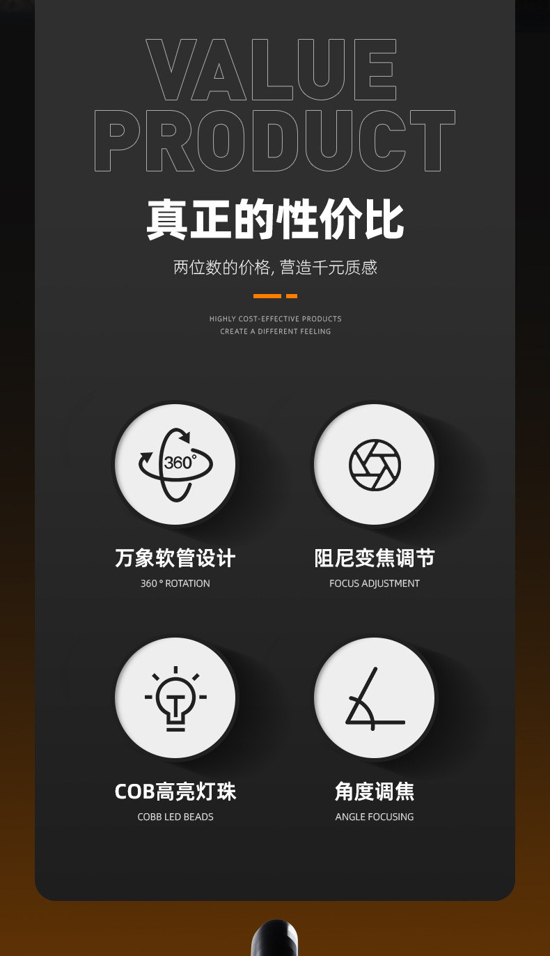 • [조정 가능한 초점] 3W 미니 스포트라이트 [따뜻한 빛 흑백]