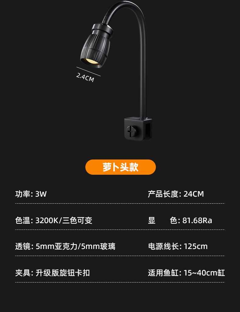 • [조정 가능한 초점] 3W 미니 스포트라이트 [차가운 흰색/따뜻한 흰색/따뜻한 노란색, 40 이내 수조]