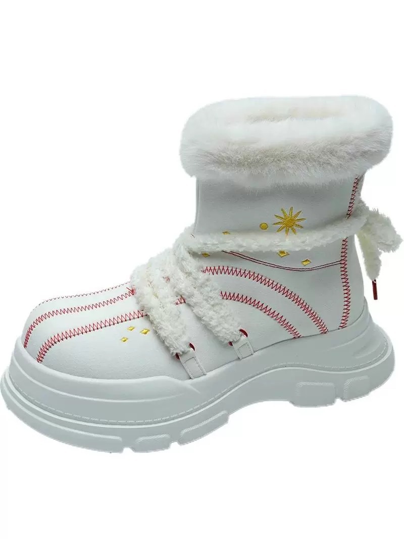 밀크 화이트 큰 머리 스노우 부츠 여성 2024 겨울 새로운 모피 하나 미끄럼 기모 두꺼운 바닥 따뜻한면 신발 조수스토어 가기