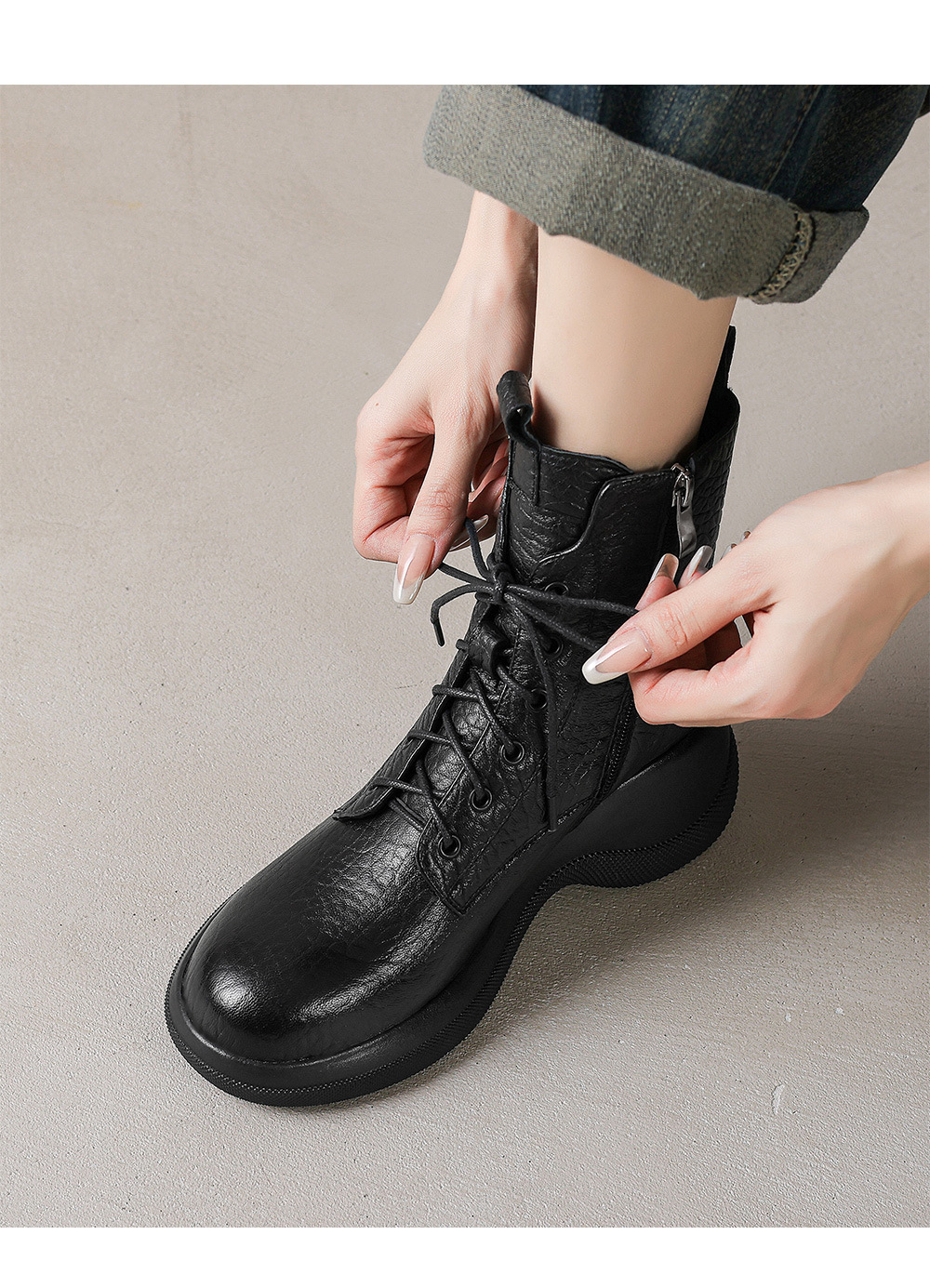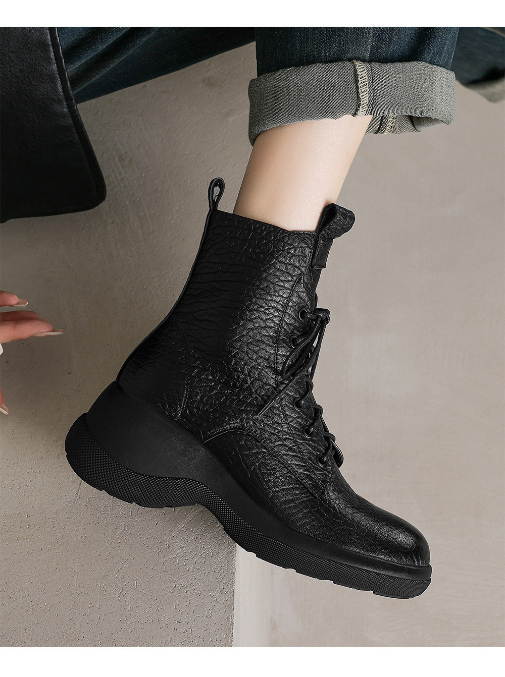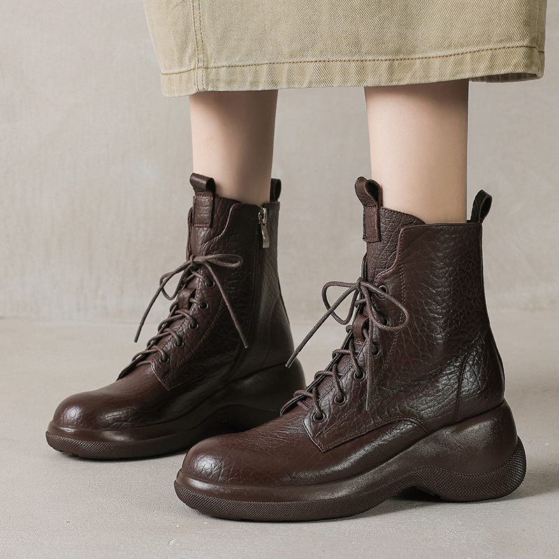 작은 두꺼운 밑창 Martins 부츠 여성 정품 가죽 통 스키니 부츠 2024 새로운 가을 및 겨울 하이힐 웨지 쇼트 부츠스토어 가기