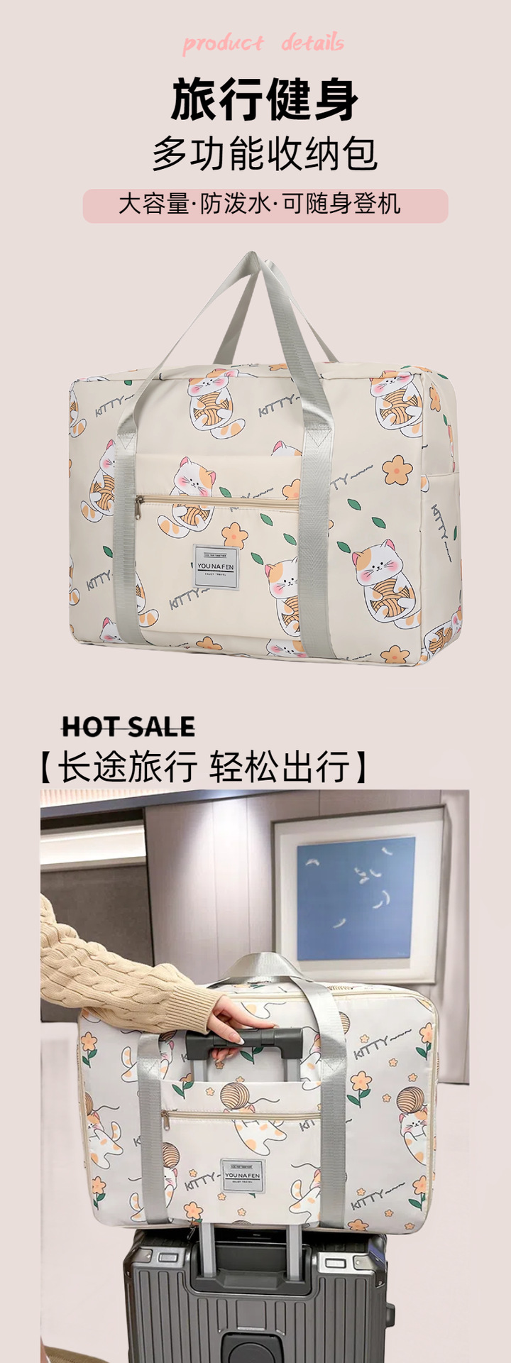 퀼트 보관 가방 단거리 여행 의류 보관 가방 대용량 이동 여행 가방 수하물 가방 귀여운 여행 가방