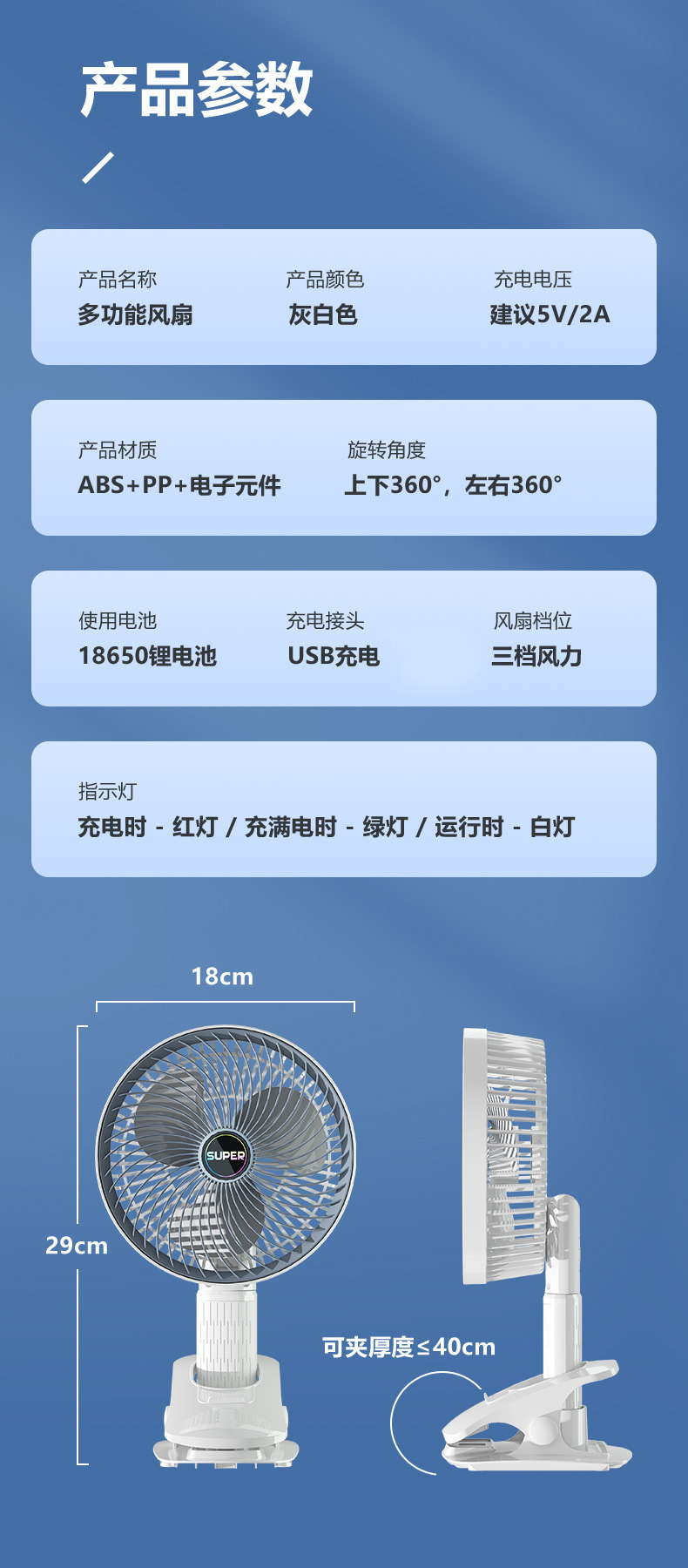 데스크탑 작은 팬 충전 및 이중 목적 장수 대형 데스크탑 기숙사 사무실 조용한 휴대용 클립 전기 팬스토어 가기