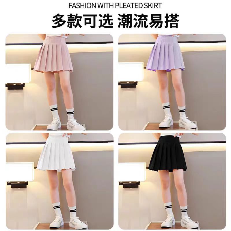 여자 테니스 스커트 여름 스포츠 흰색 짧은 스커트 2025 한국 스타일 대학 스타일 주름 스커트 큰 어린이의 세련된 여름 의류
