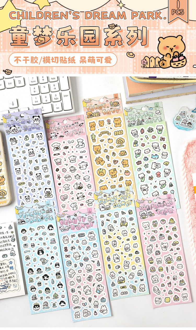 어린이 꿈 파라다이스 시리즈 접착 일반 스티커 한국 스타일 귀여운 만화 작은 패턴 구오 카드 손 계정 장식 스티커스토어 가기