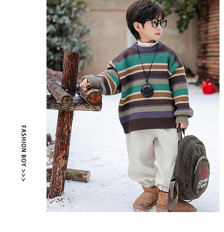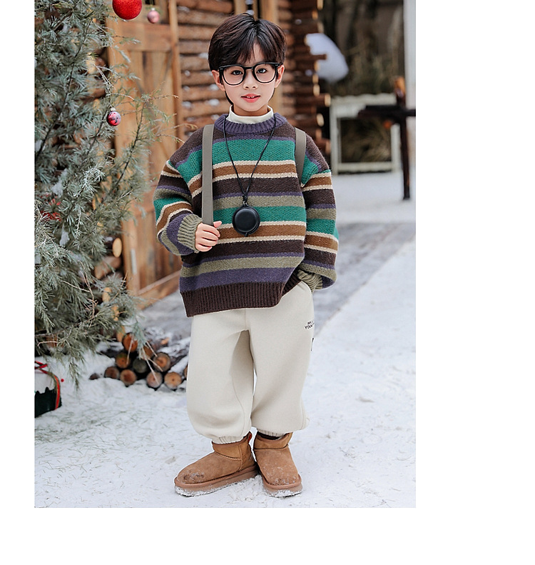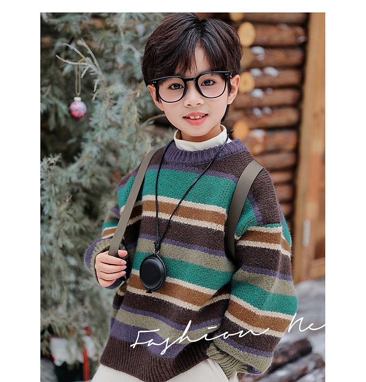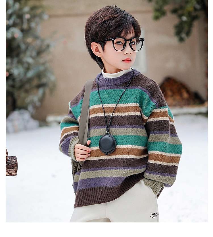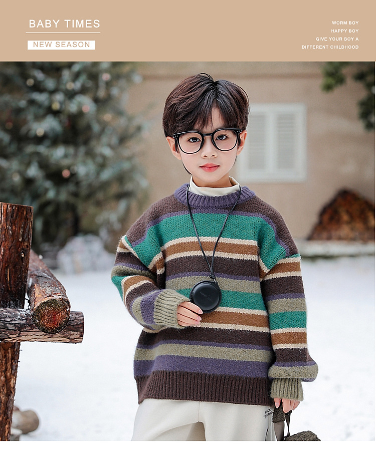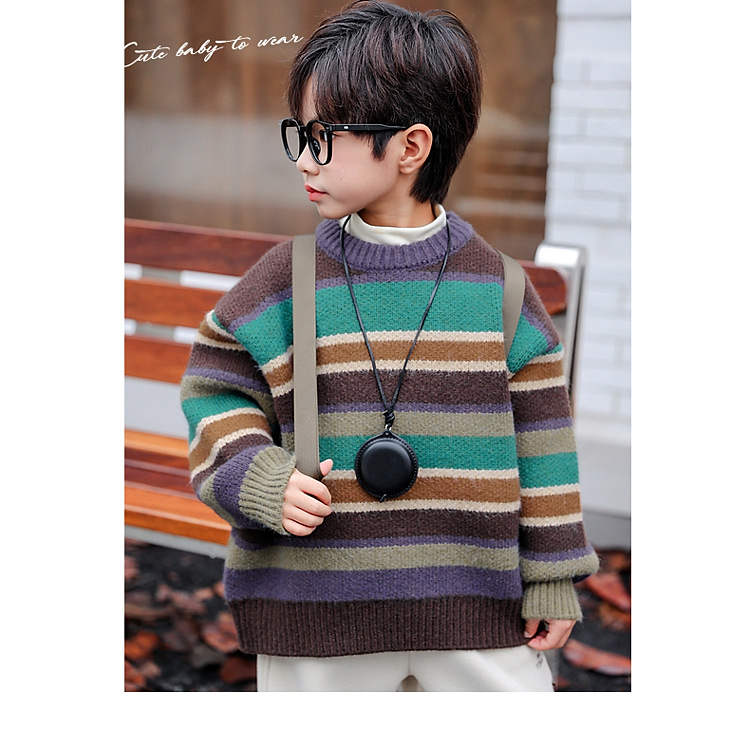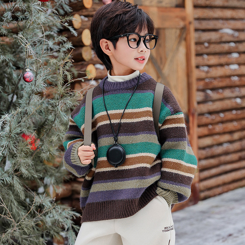 동화 메모리 소년의 스웨터 겨울 2024 새로운 어린이 겨울 풀오버 스트라이프 스웨터 소년의 스웨터스토어 가기
