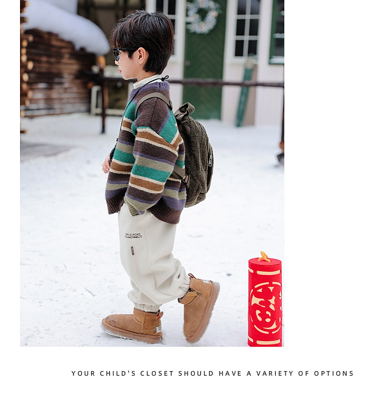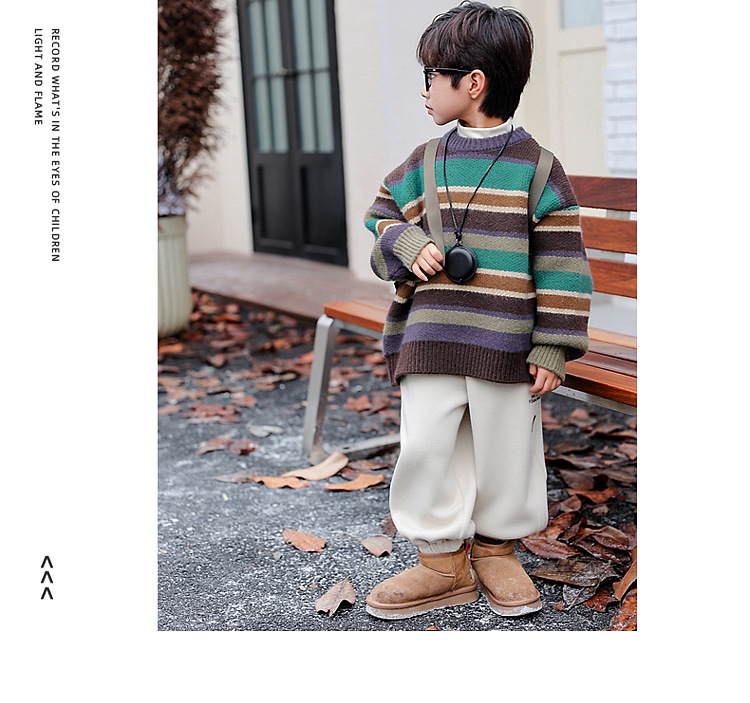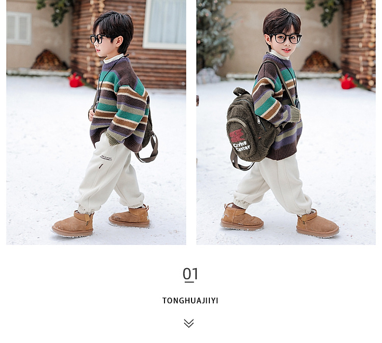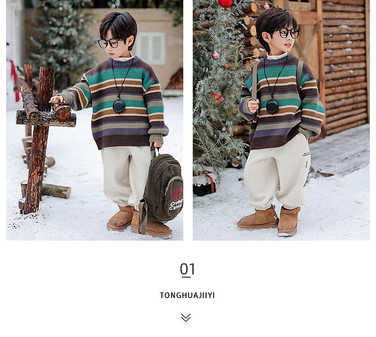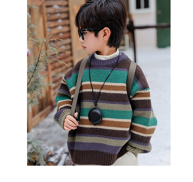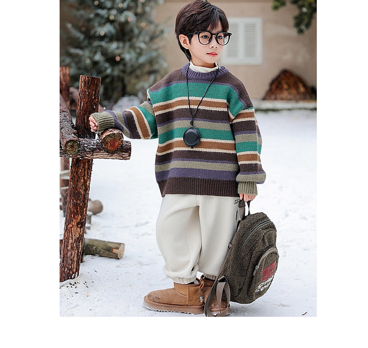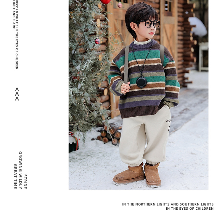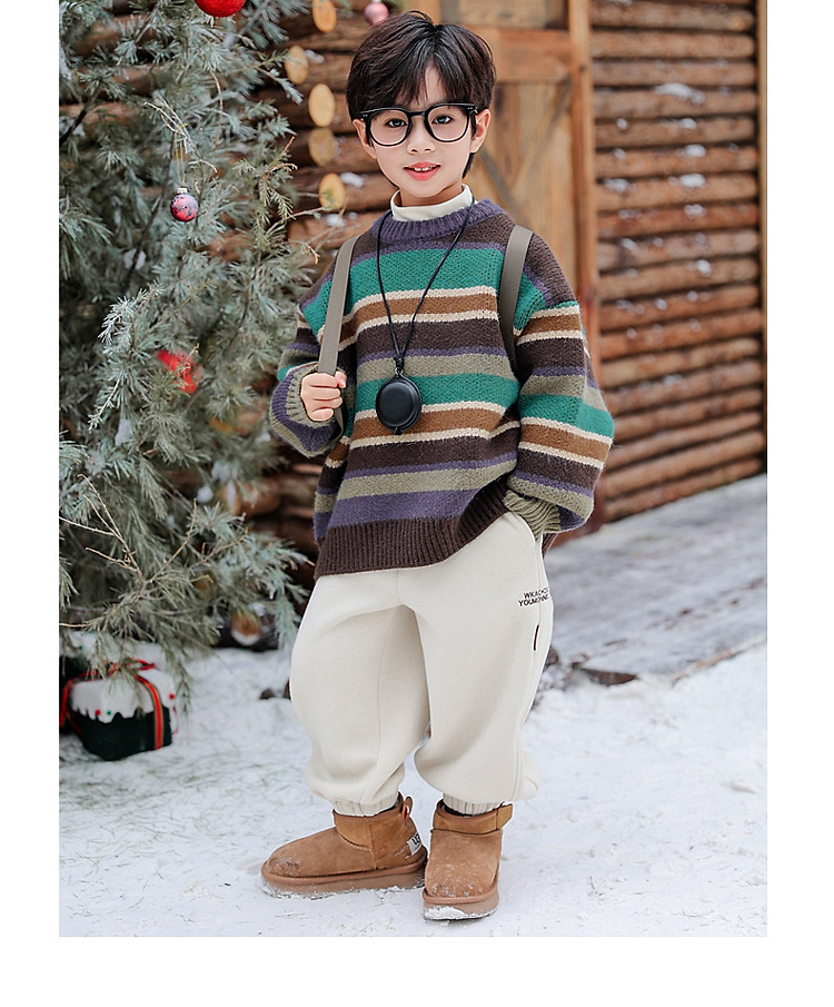 동화 메모리 소년의 스웨터 겨울 2024 새로운 어린이 겨울 풀오버 스트라이프 스웨터 소년의 스웨터스토어 가기