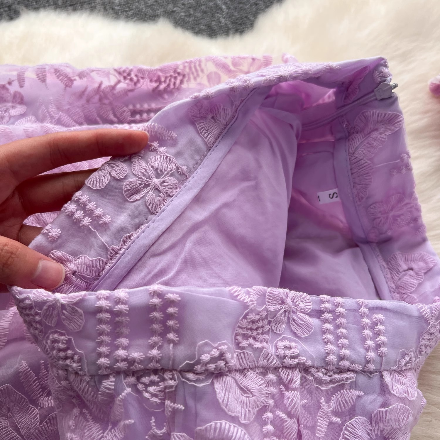 고급 사교계 스타일 세트 여성용 프랑스 레이스 크로 셰 퍼프 소매 셔츠 투피스 세트 높은 허리 슬리밍 스커트스토어 가기
