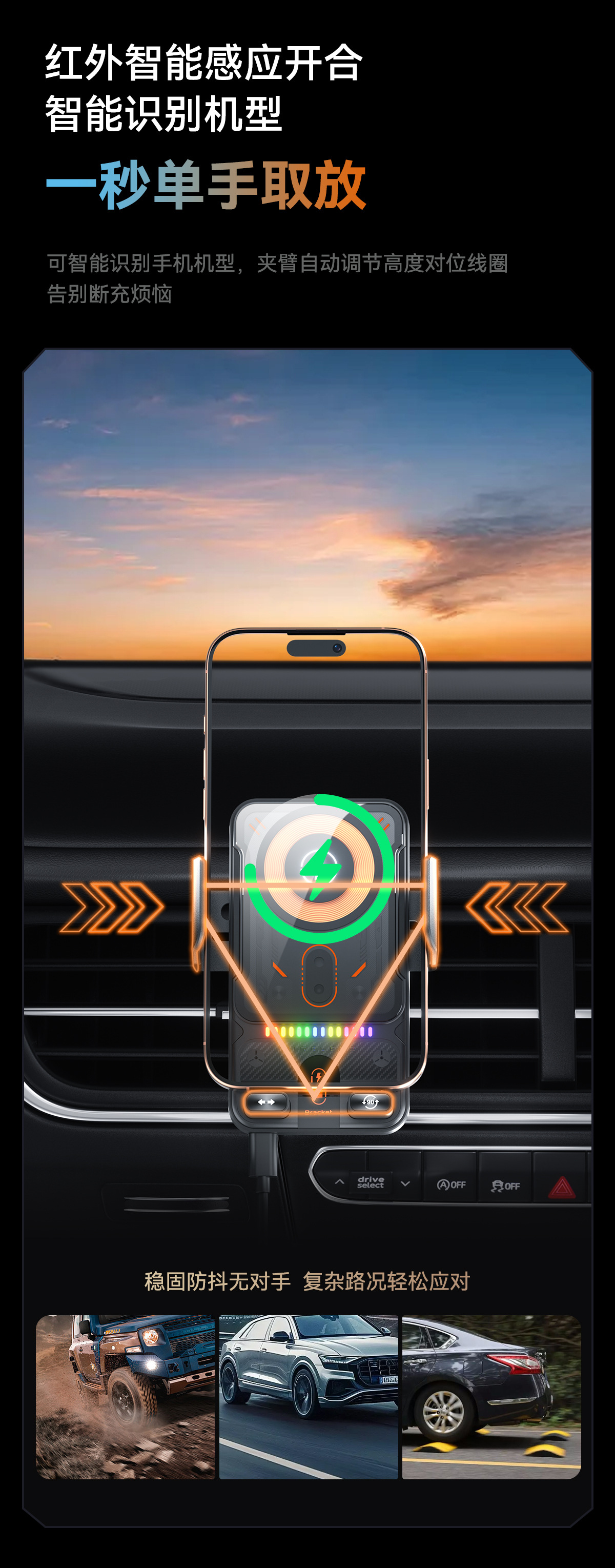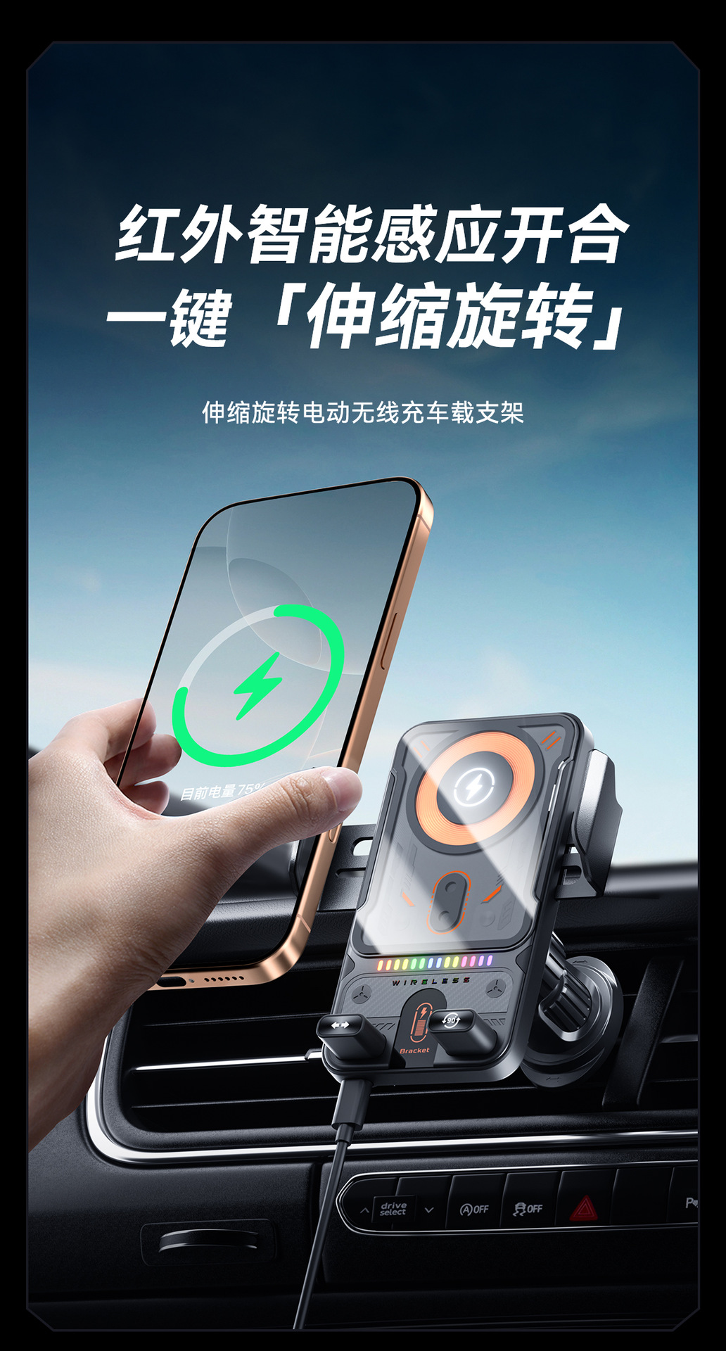 차량용 휴대폰 거치대 적외선 전동 무선 충전 거치대 센서식 에어벤트 내비게이션 범용 제조사 직판