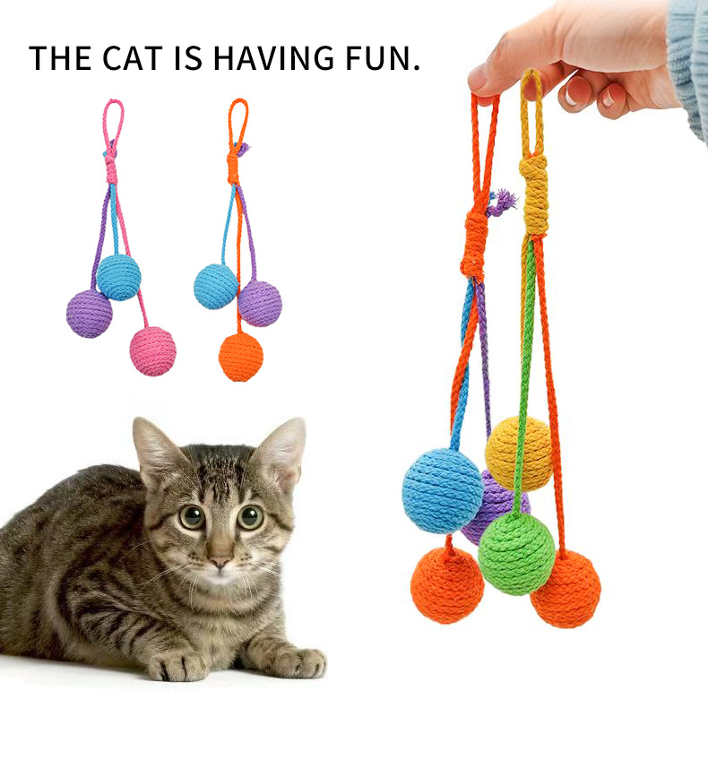 공장 생산 도매 고양이 매달려 면화 밧줄 공 물린 저항 어금니 셀프 하이 고양이 고양이 장난감 밧줄 공을 걸고있는 고양이스토어 가기